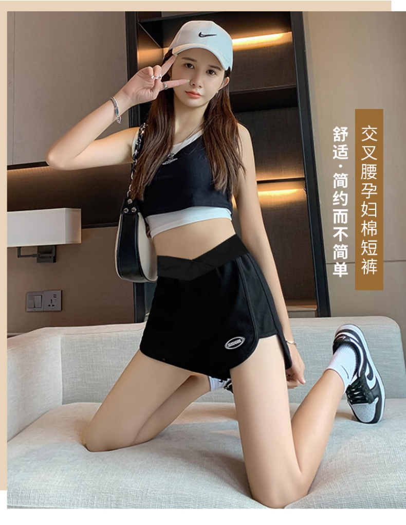 孕妇短裤女夏季薄款外穿阔腿低腰休闲交叉腰安全裤孕妇装夏装不勒