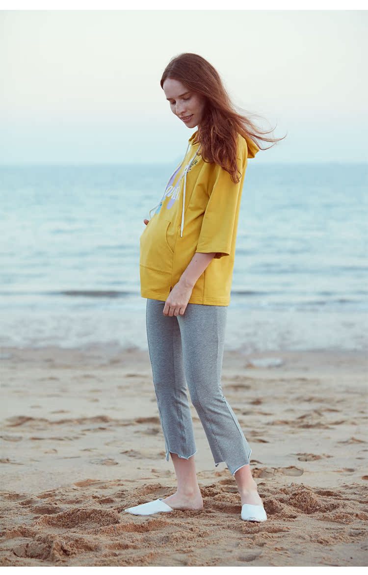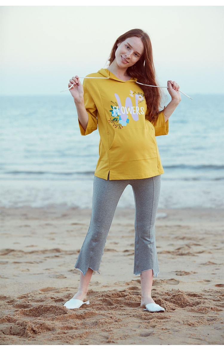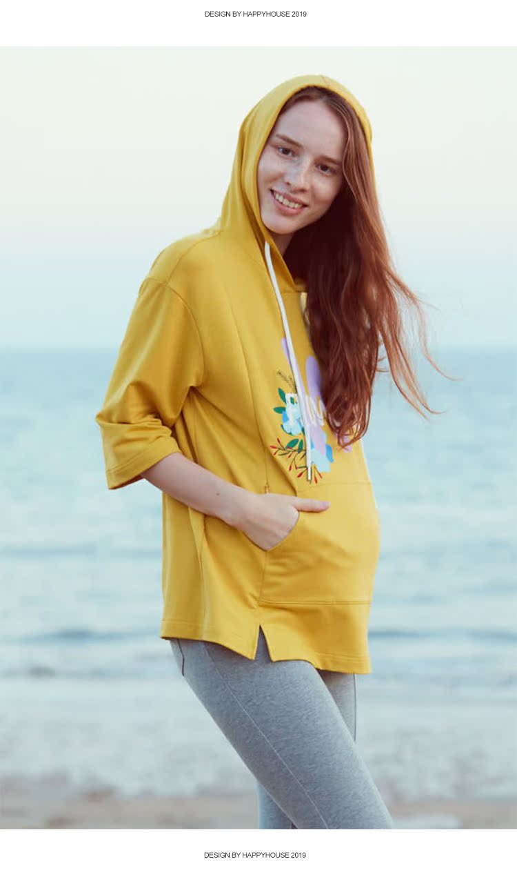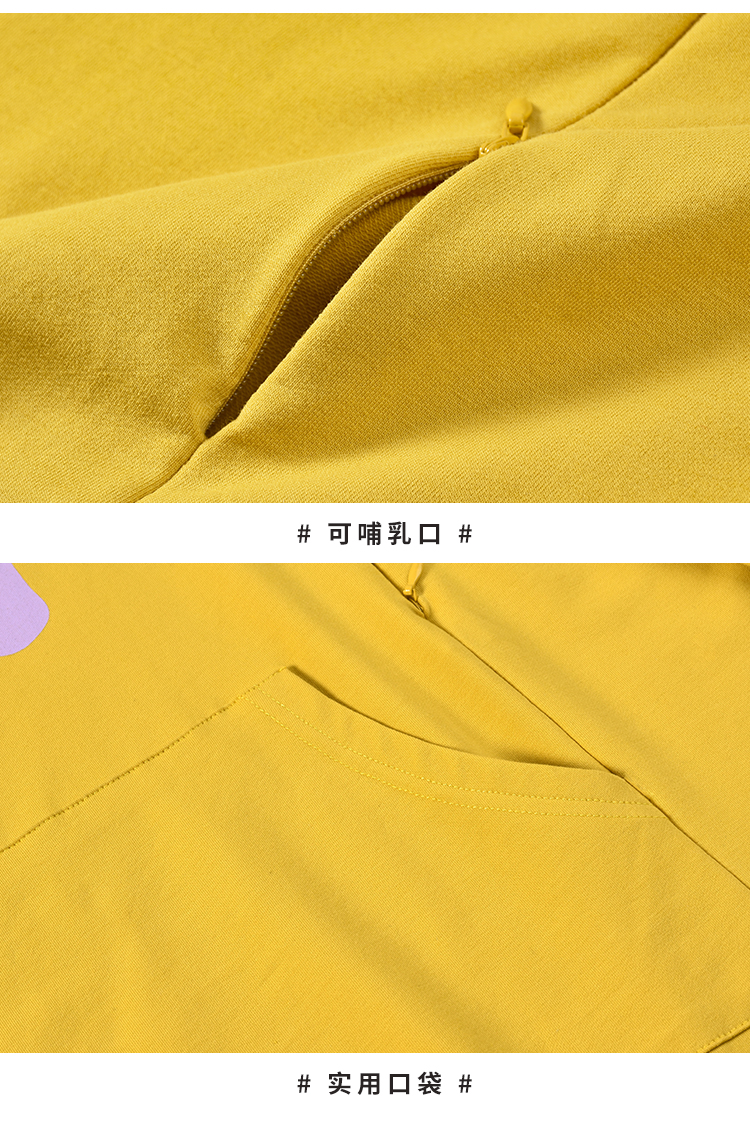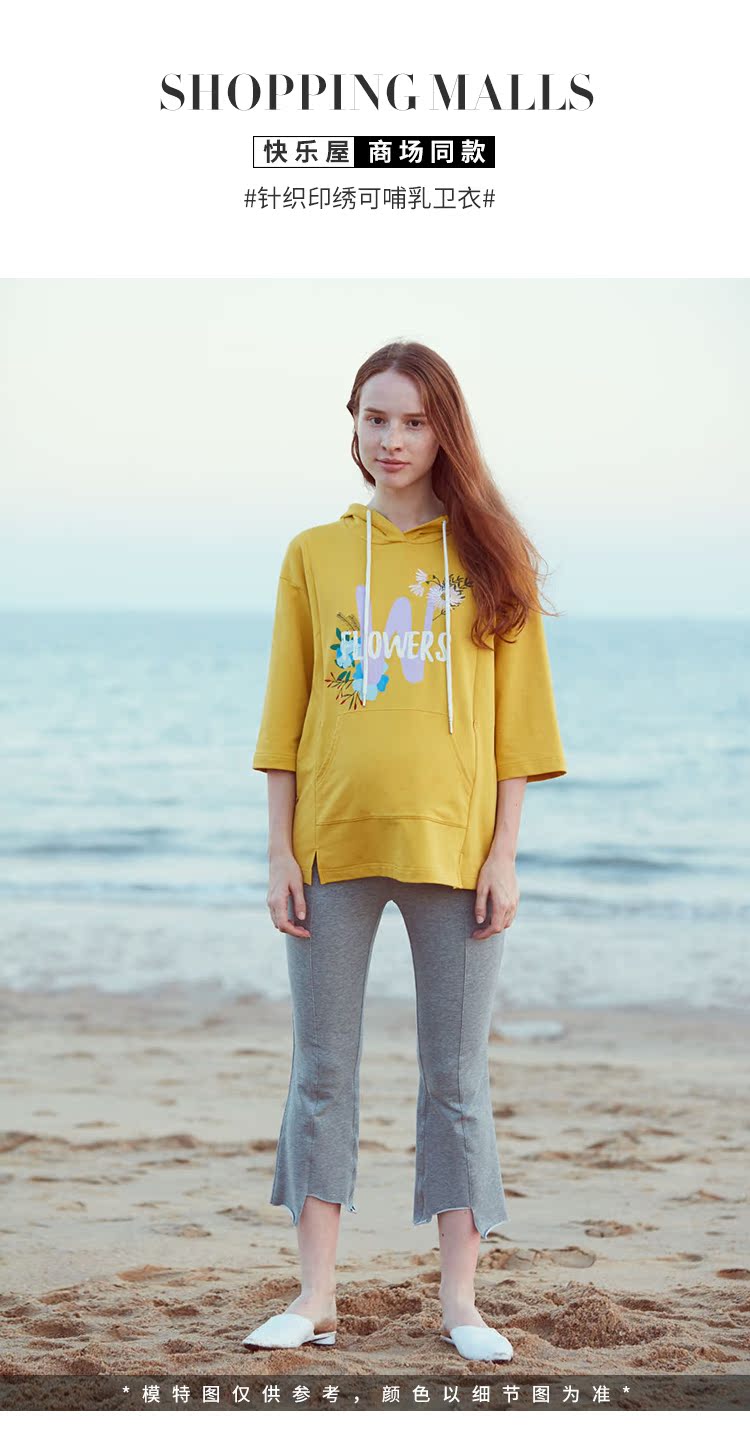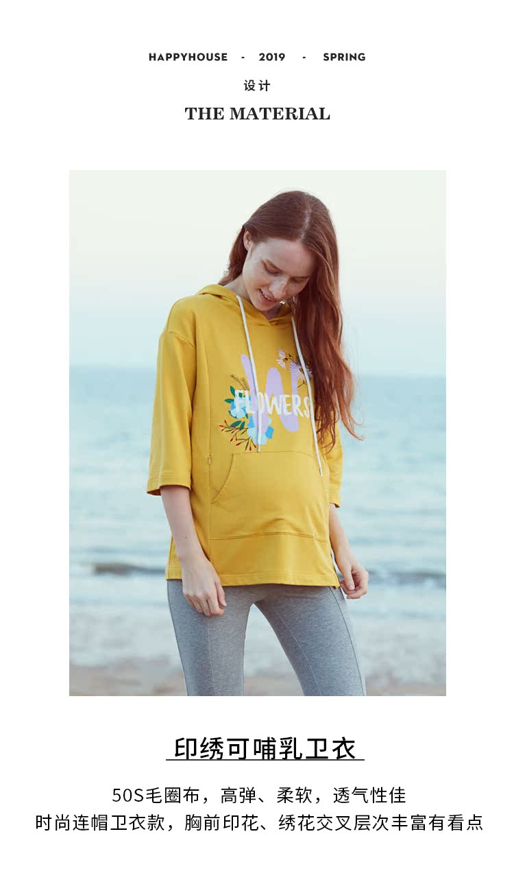 快乐屋孕妇秋装2025新款卫衣哺乳上衣喂奶套头连帽印绣图案外出衣