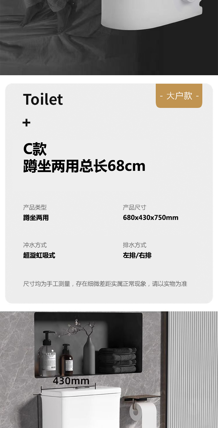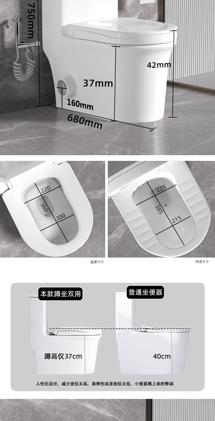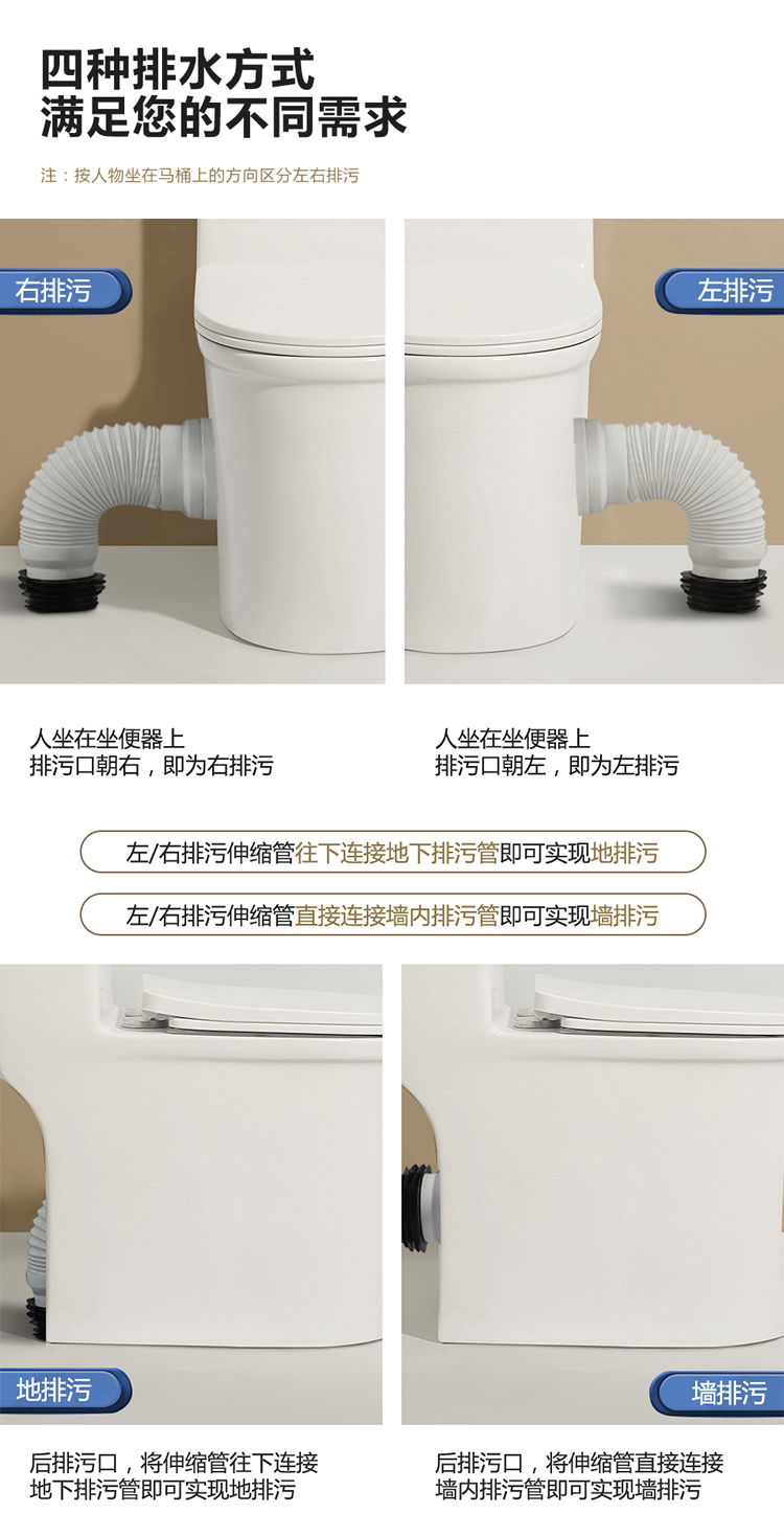 元磁小户型虹吸式左右后排马桶侧排防臭防粘定制地排坑距50mm座便