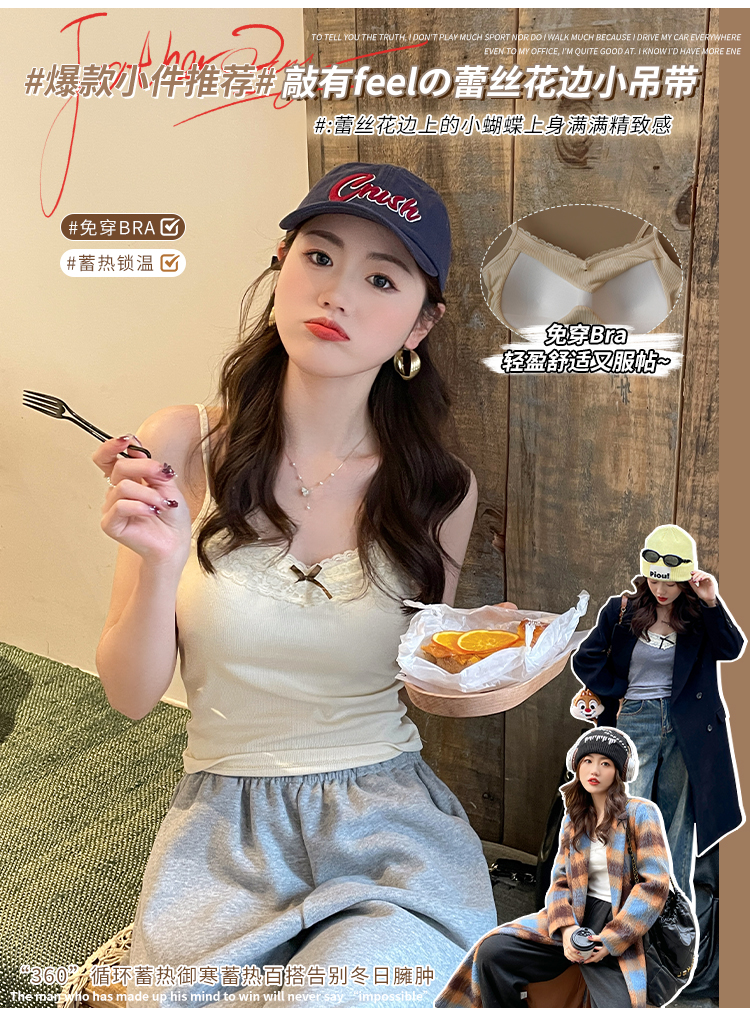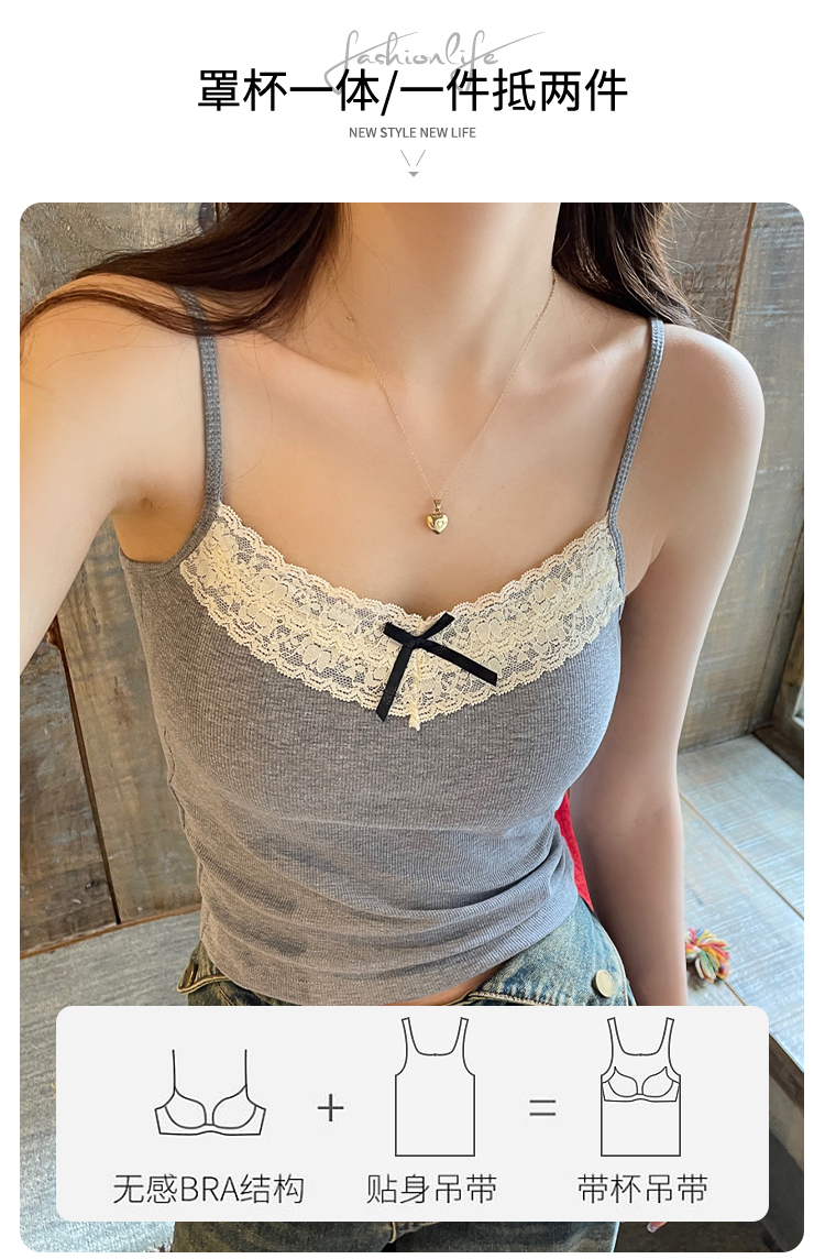 白色吊带小背心女2025新款夏季内搭打底外穿美背蕾丝短款黑色上衣