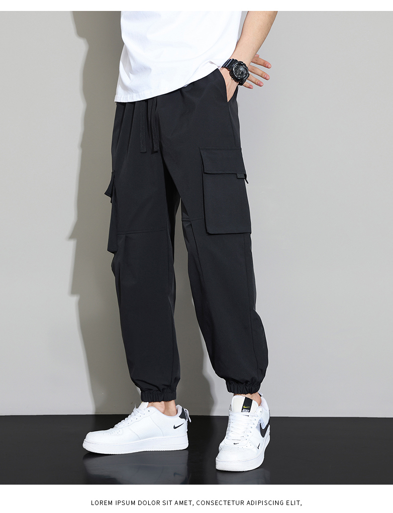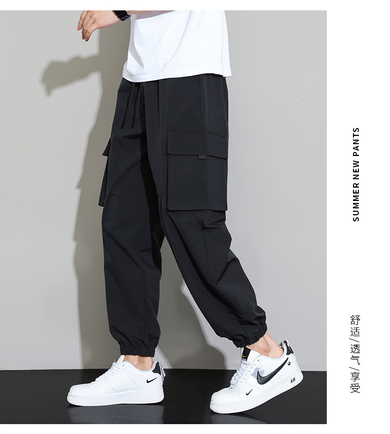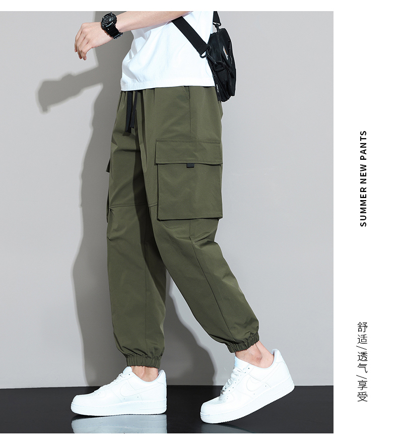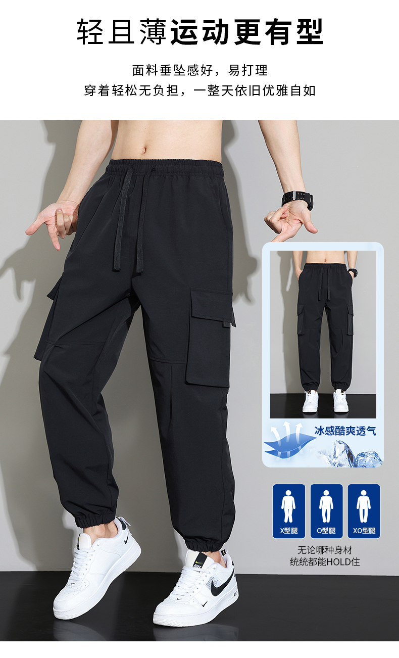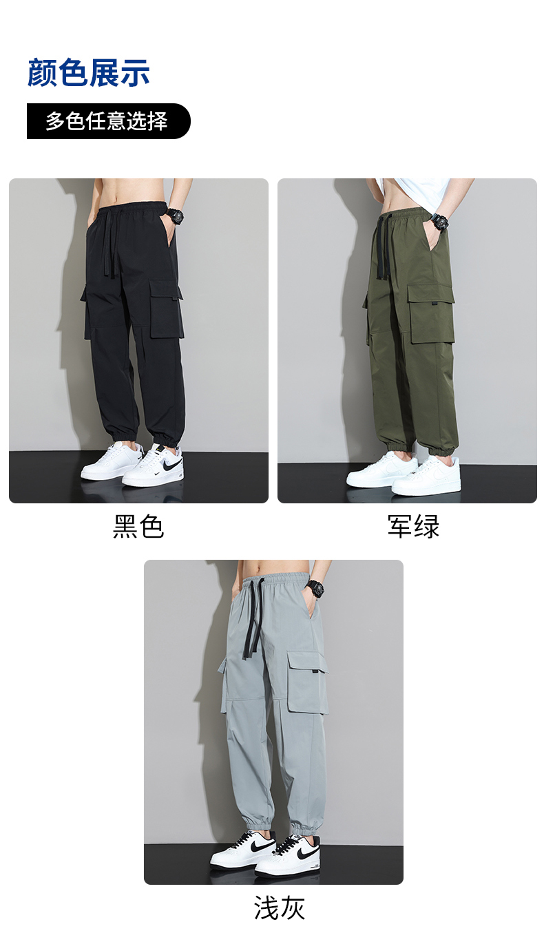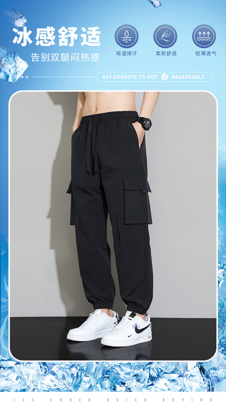 回力工装裤子男士夏季薄款多口袋冰丝九分裤宽松美式运动休闲长裤