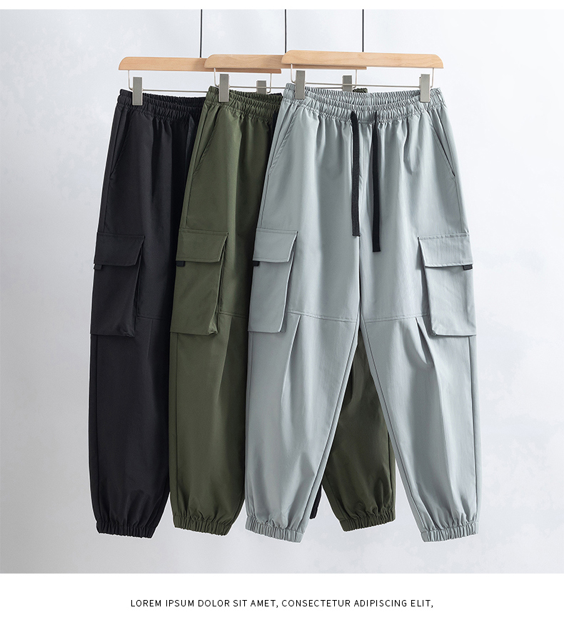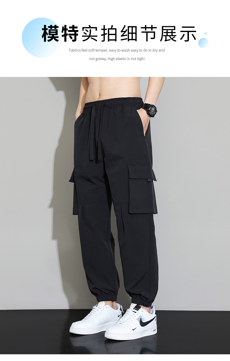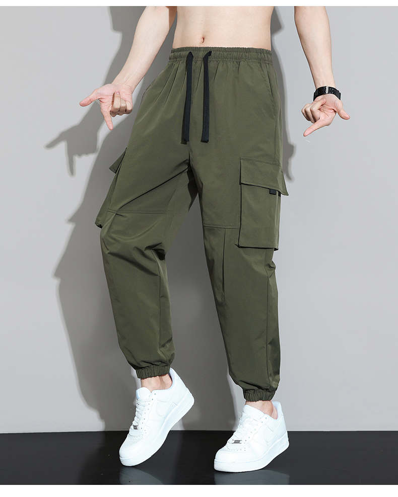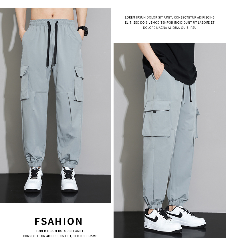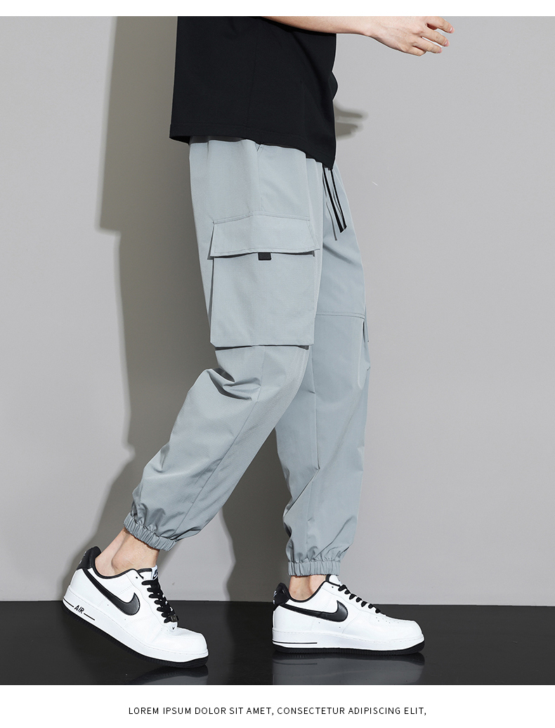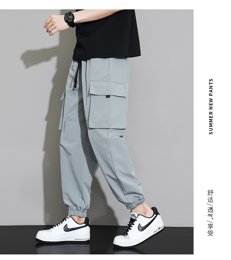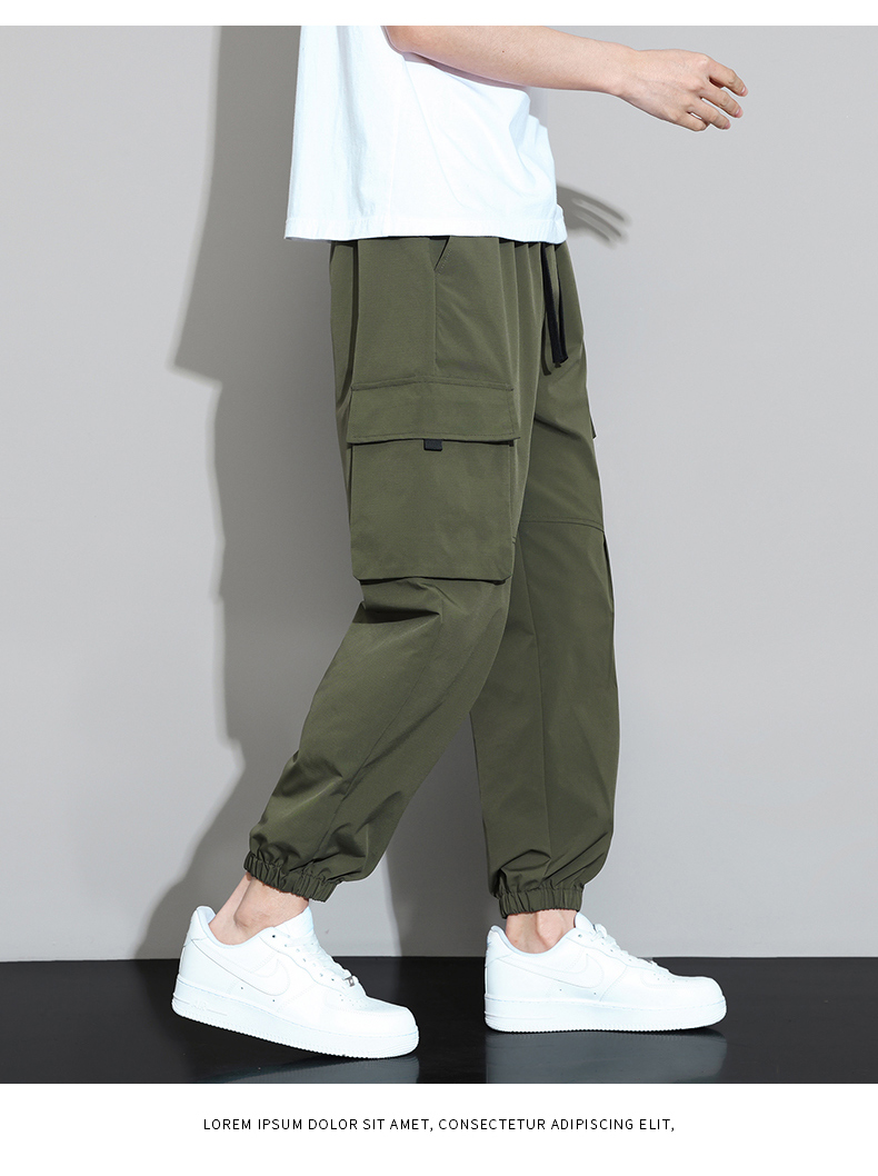 回力工装裤子男士夏季薄款多口袋冰丝九分裤宽松美式运动休闲长裤