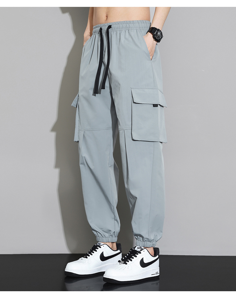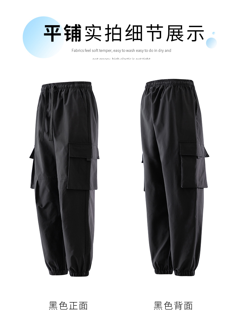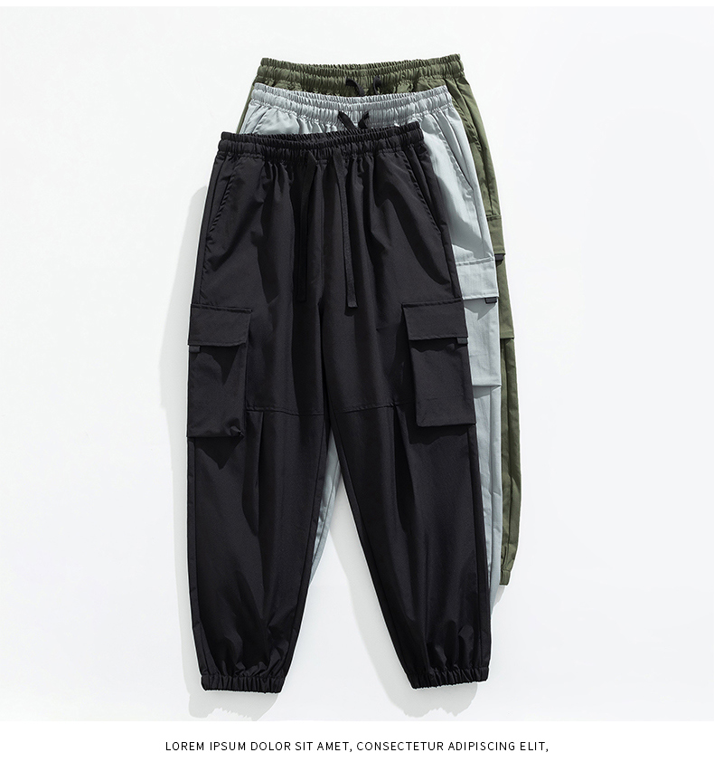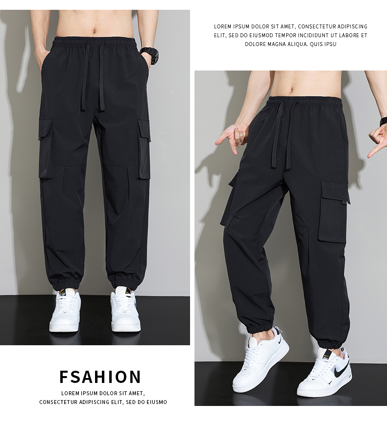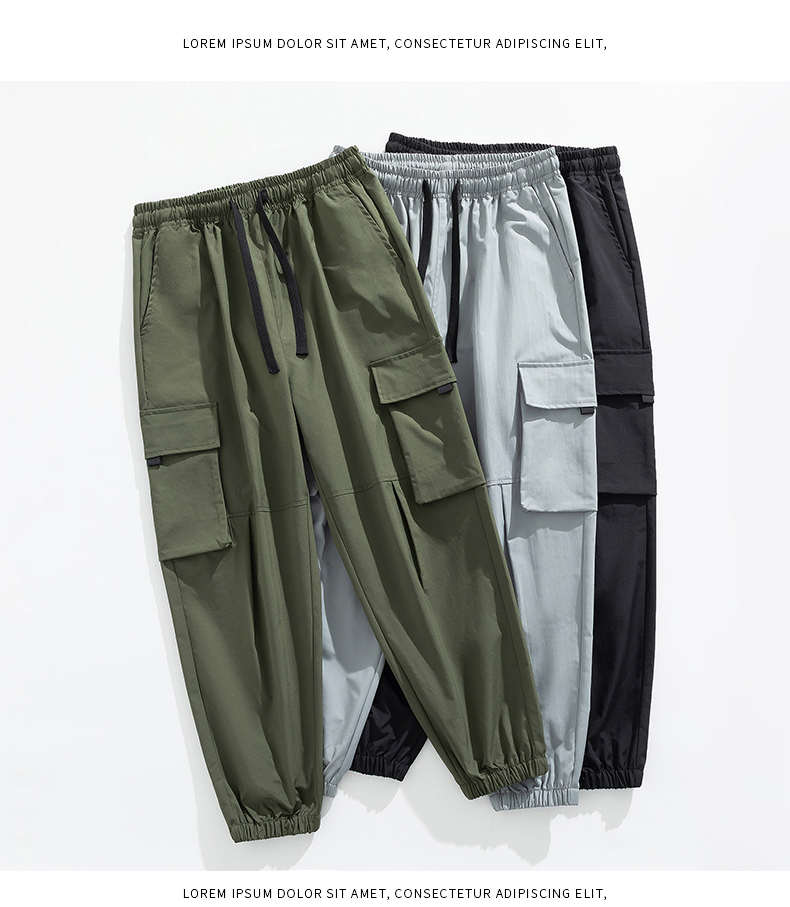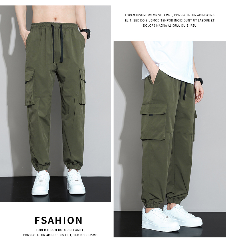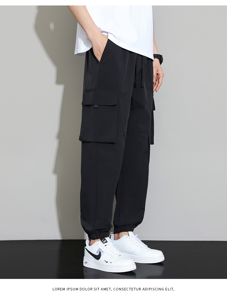 回力工装裤子男士夏季薄款多口袋冰丝九分裤宽松美式运动休闲长裤