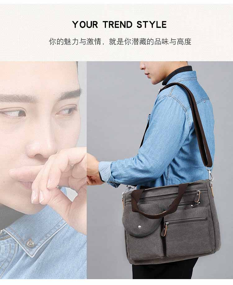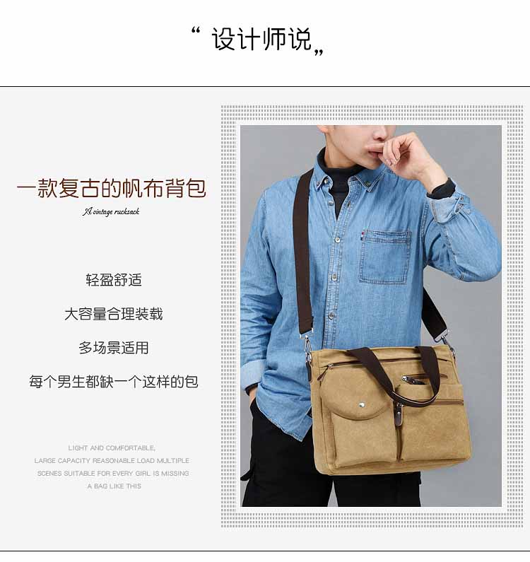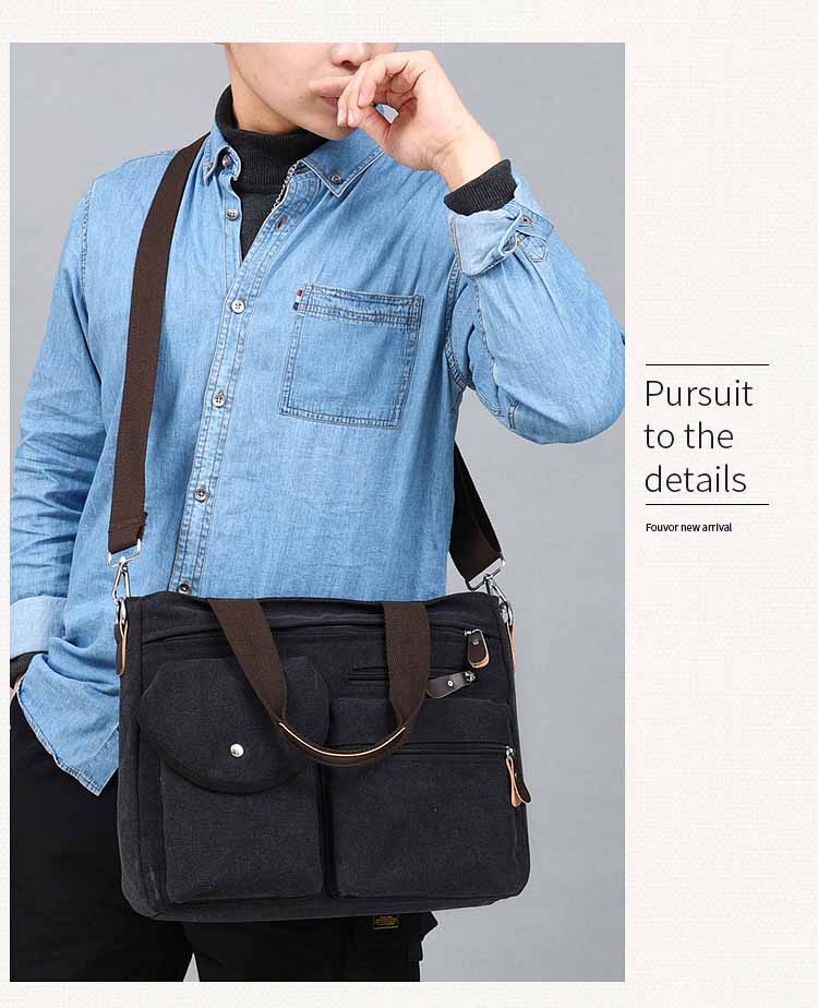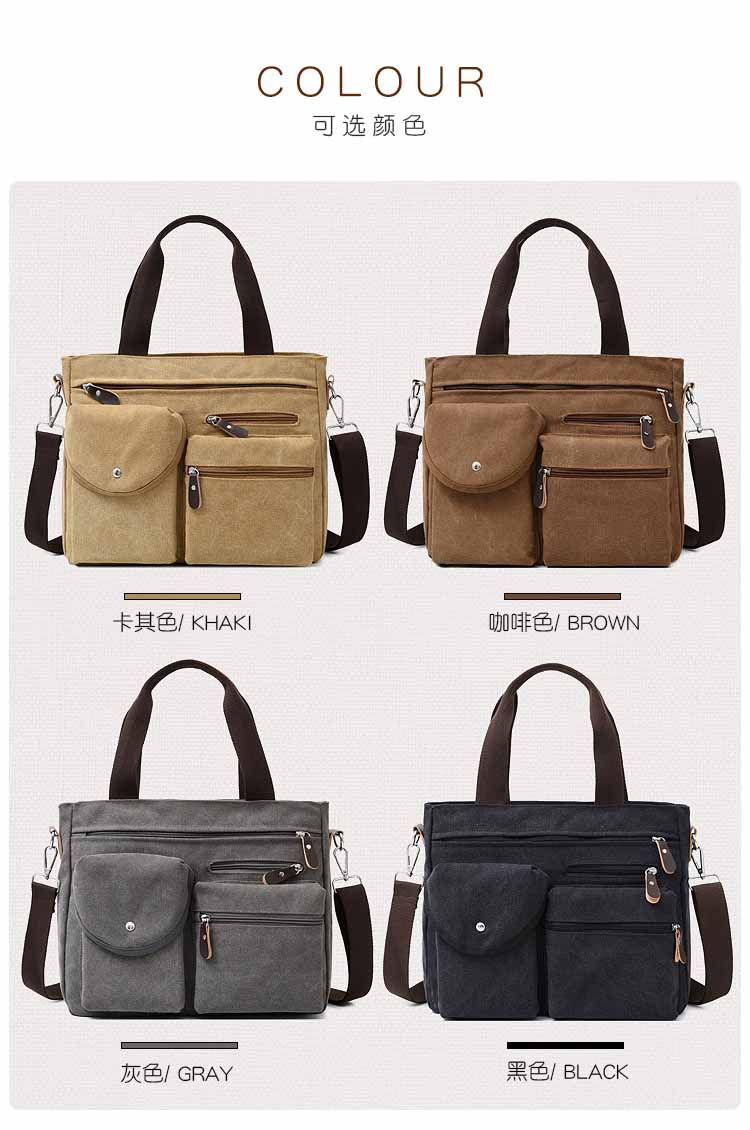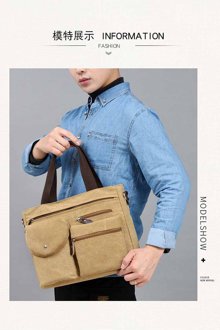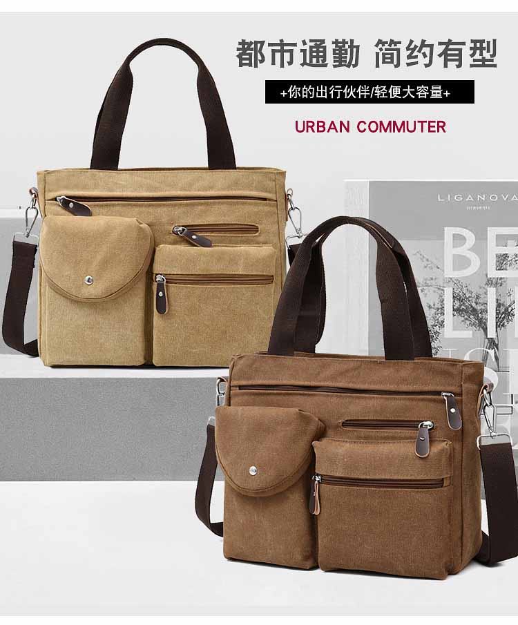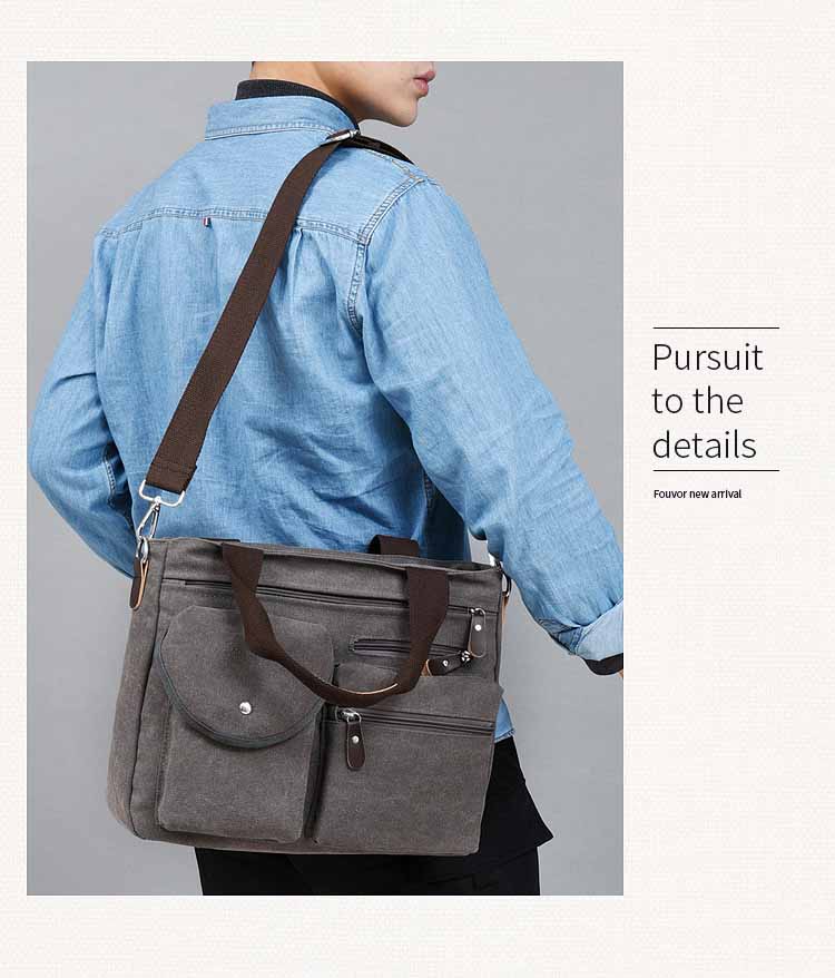 新款简约复古帆布包男款手提商务公文包百搭潮时尚休闲单肩斜挎包