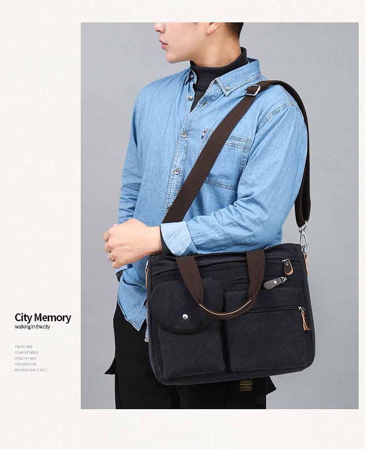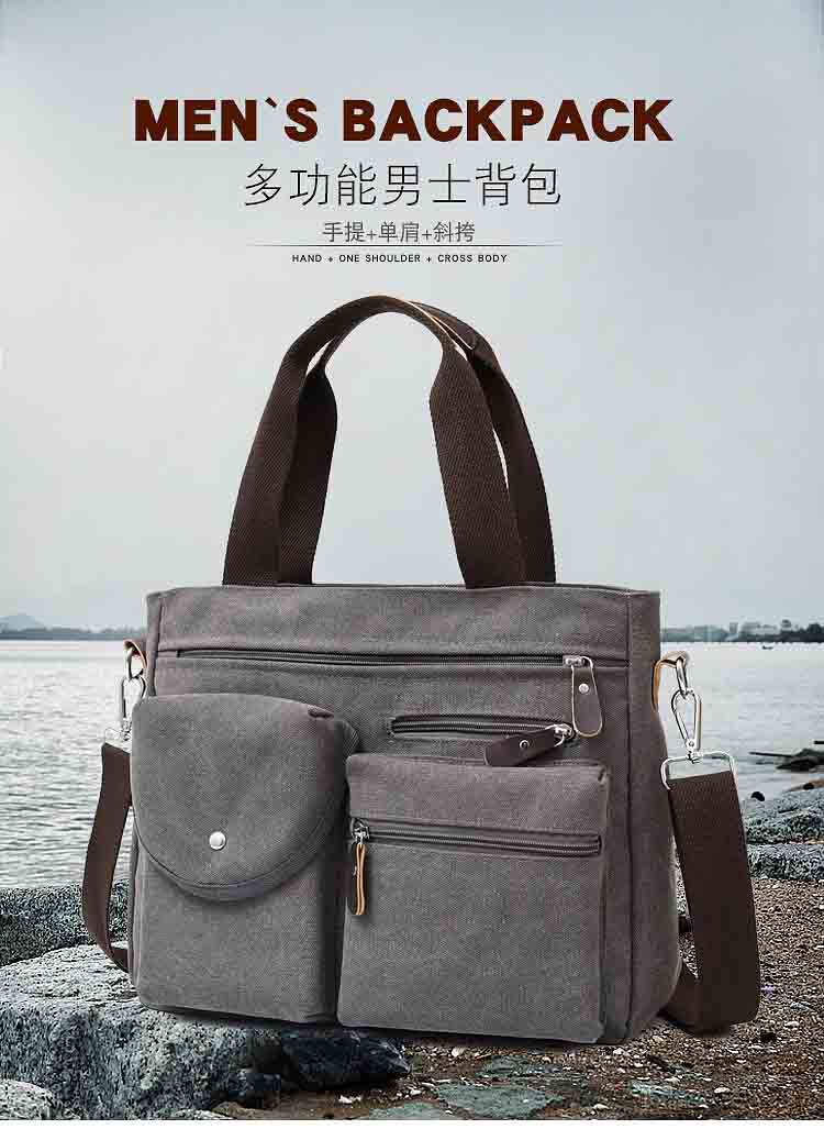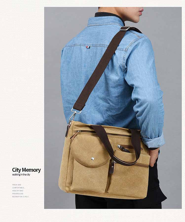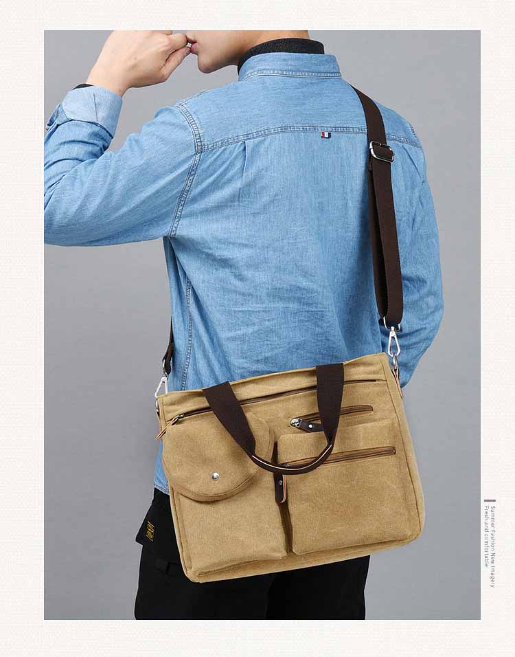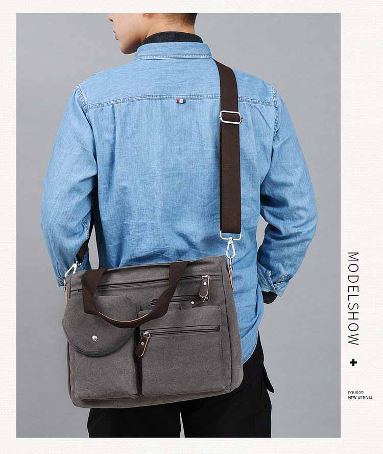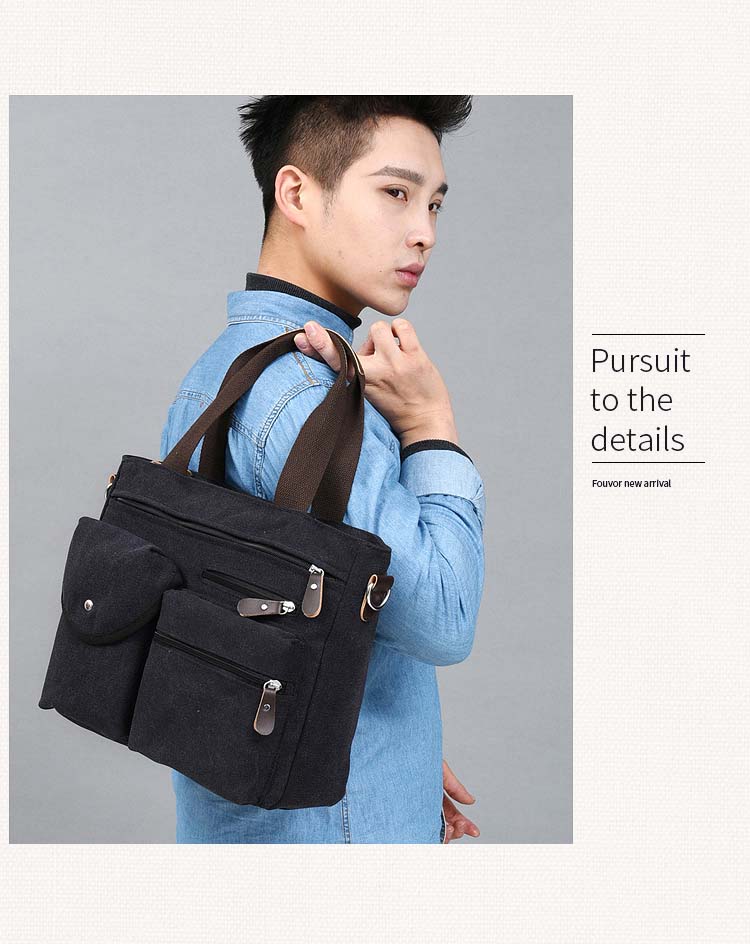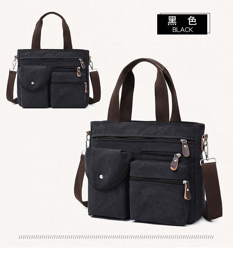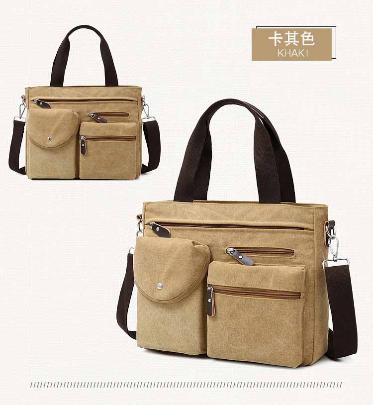 新款简约复古帆布包男款手提商务公文包百搭潮时尚休闲单肩斜挎包