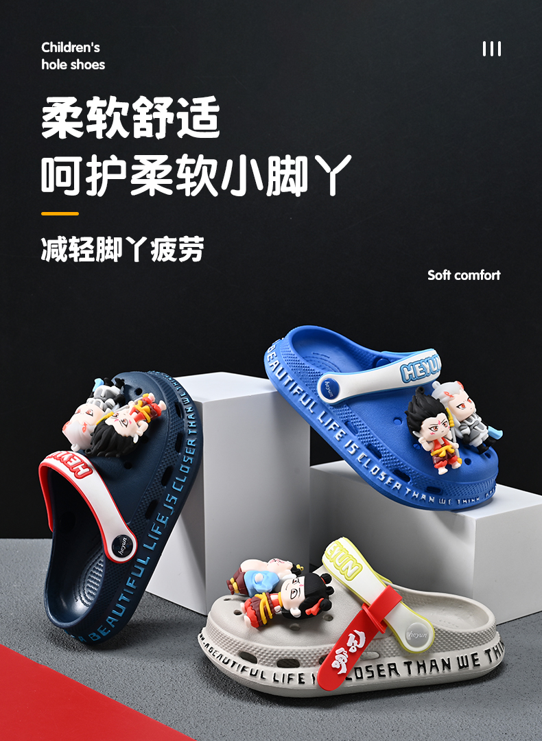 哪吒魔童闹海儿童拖鞋男童洞洞鞋夏季新款卡通室内防滑洗澡踩屎感