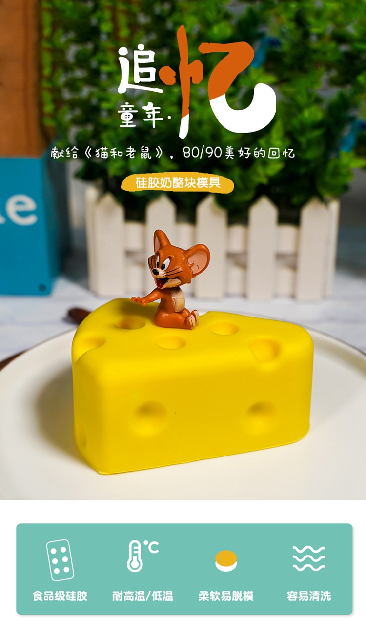 网红猫和老鼠奶酪模具巧克力布丁冰淇淋芝士硅胶慕斯蛋糕烘焙模具