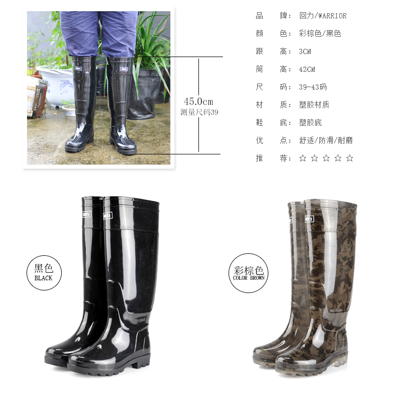 回力雨鞋男加绒加厚高筒雨靴塑胶牛筋底工作钓鱼耐磨棉水靴子套鞋