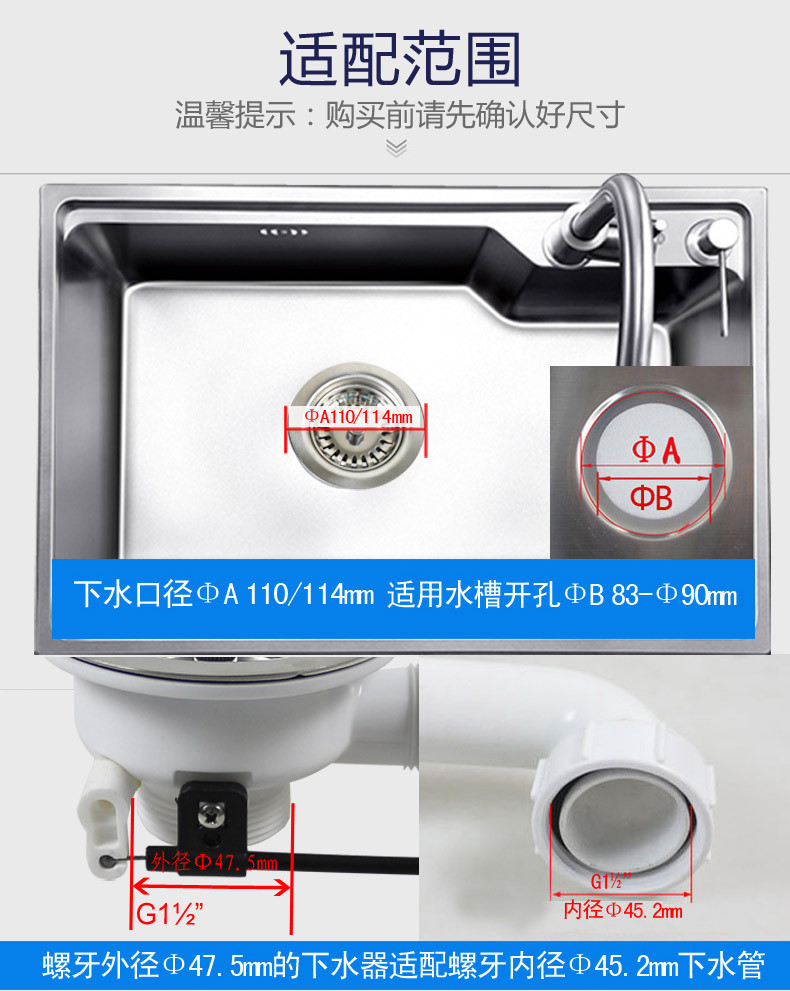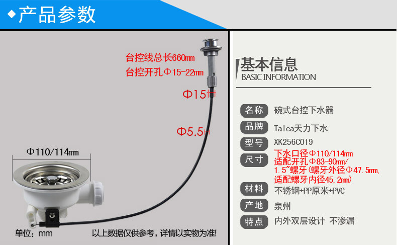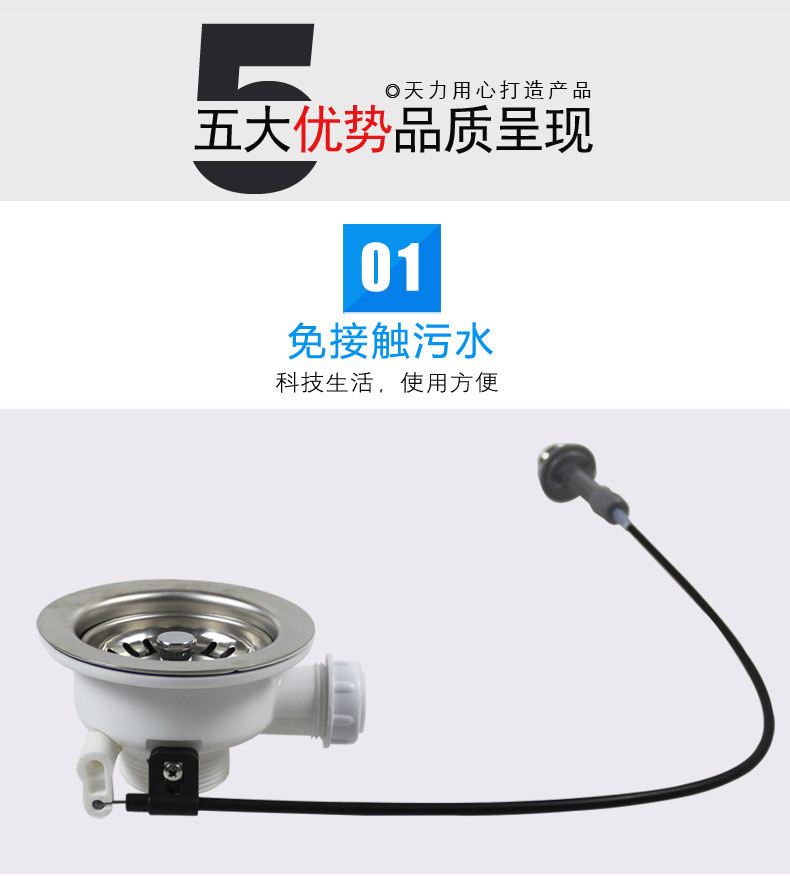 天力水槽提拉台控开关114mm下水器出口欧洲碗体免接触污水XK256