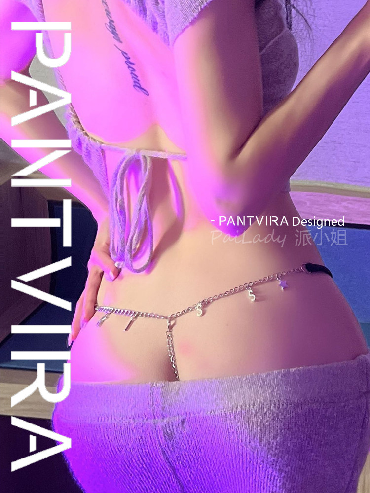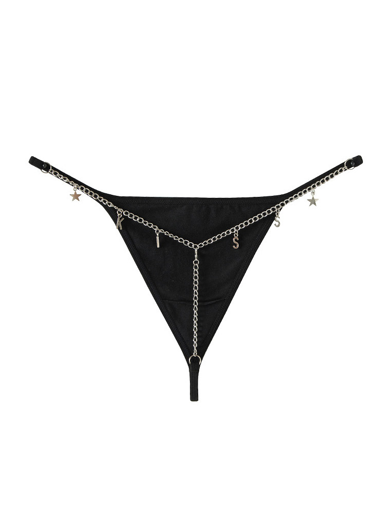 狂野金属*女士丁字裤一根带超性感内裤链蜜桃臀纯欲字母低腰t裤女
