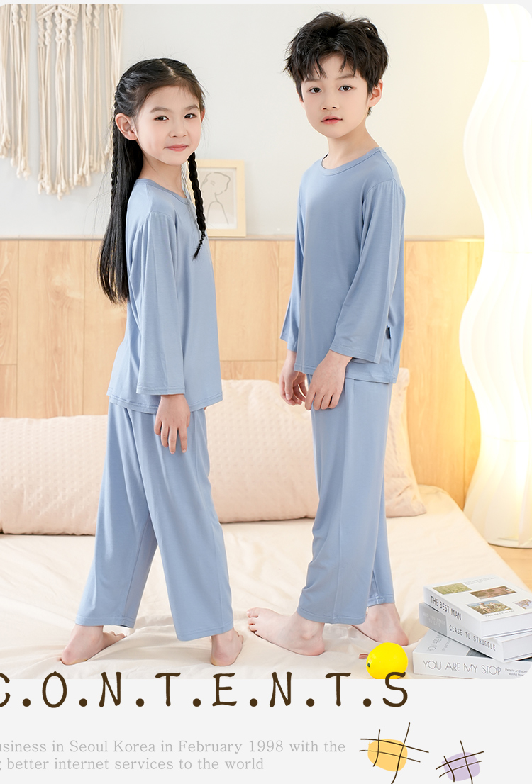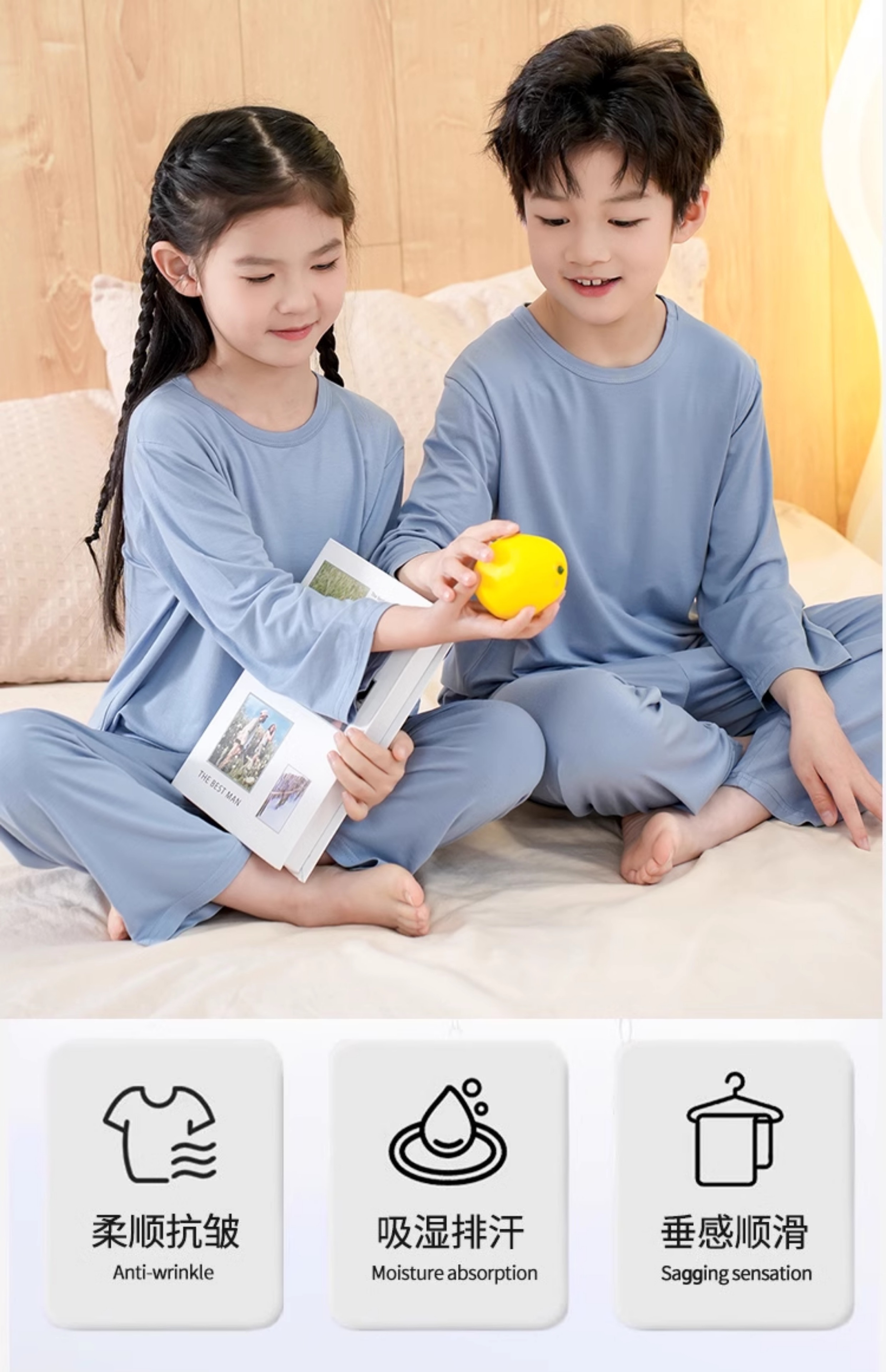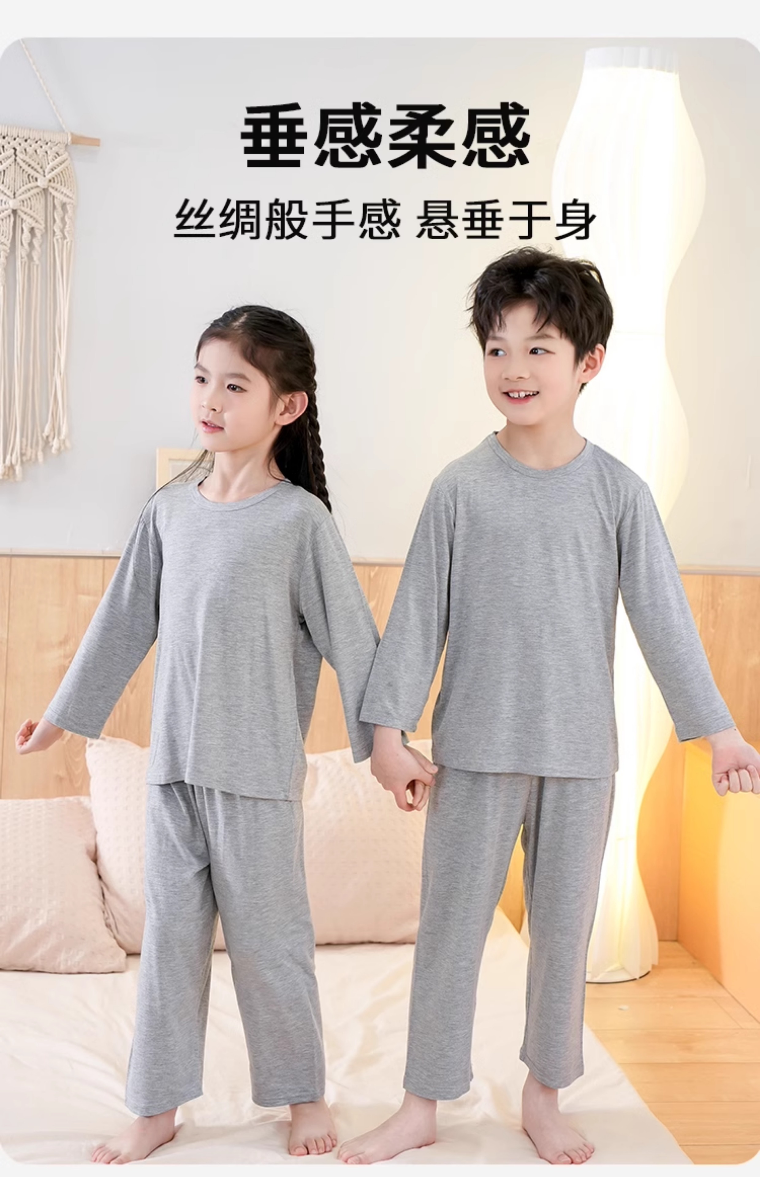 莫代尔儿童睡衣男童秋衣秋裤超薄男孩大童女童夏季空调居家服套装