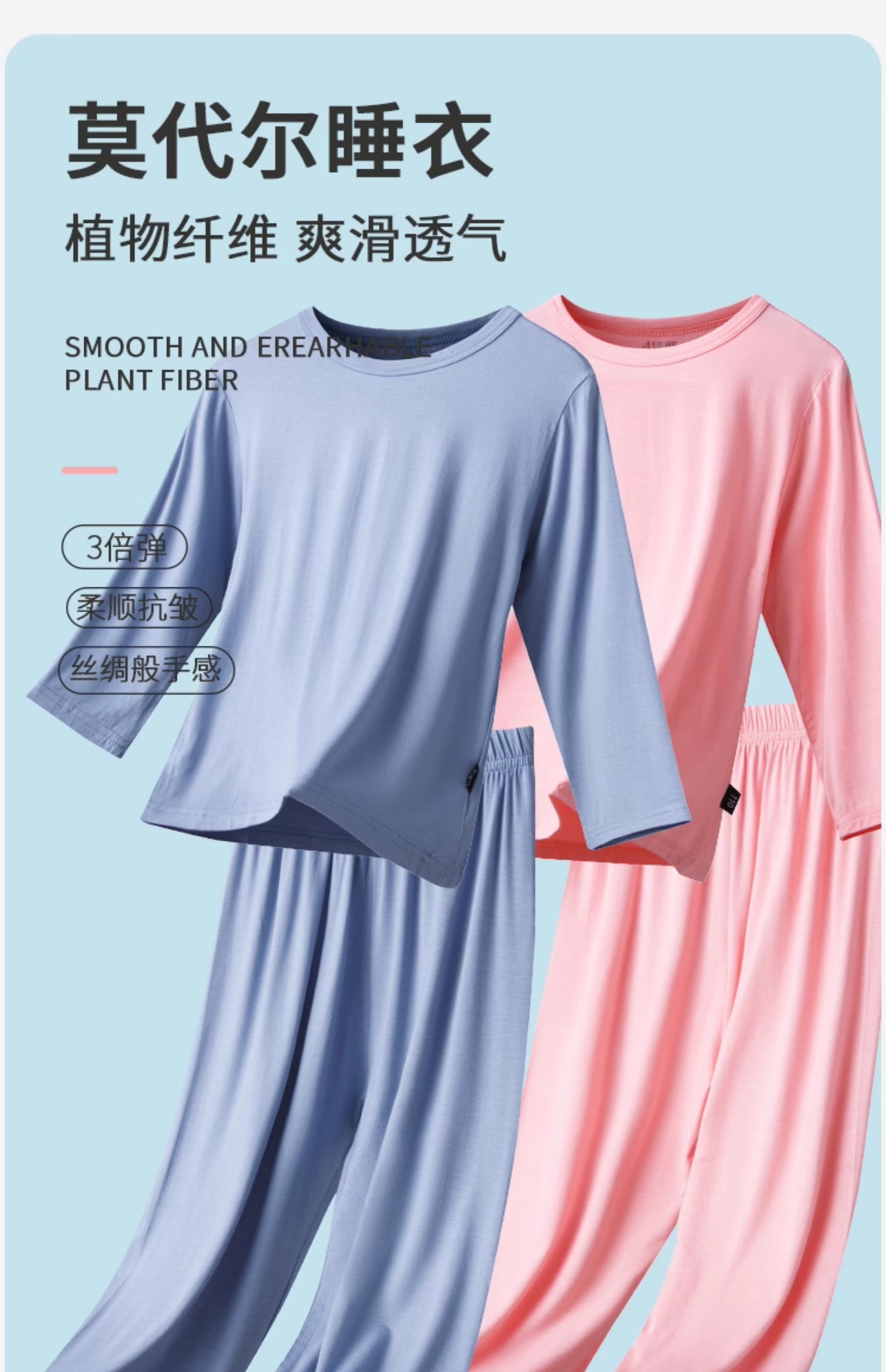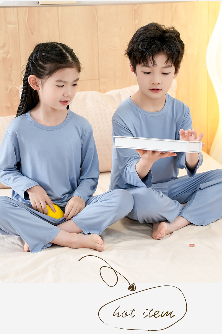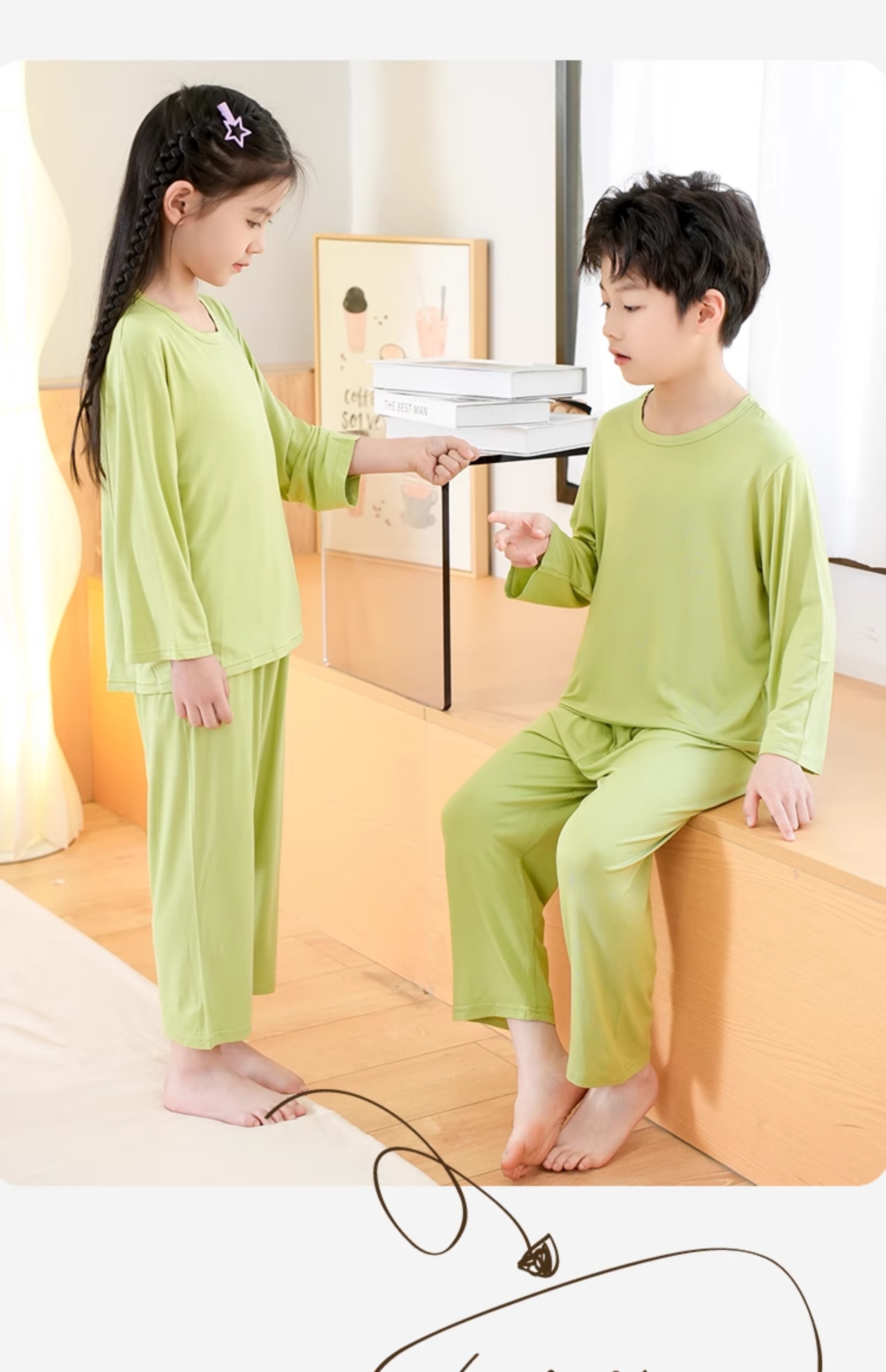莫代尔儿童睡衣男童秋衣秋裤超薄男孩大童女童夏季空调居家服套装