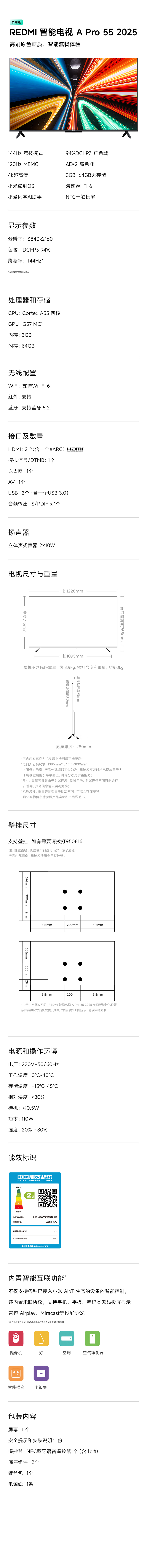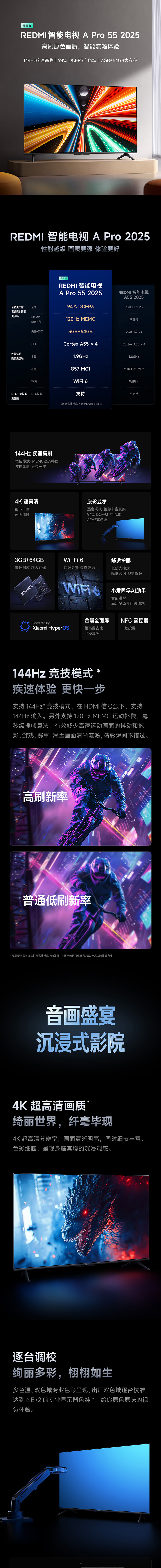 小米REDMI A Pro55英寸高清144Hz高刷平板电视机2025以旧换新补贴