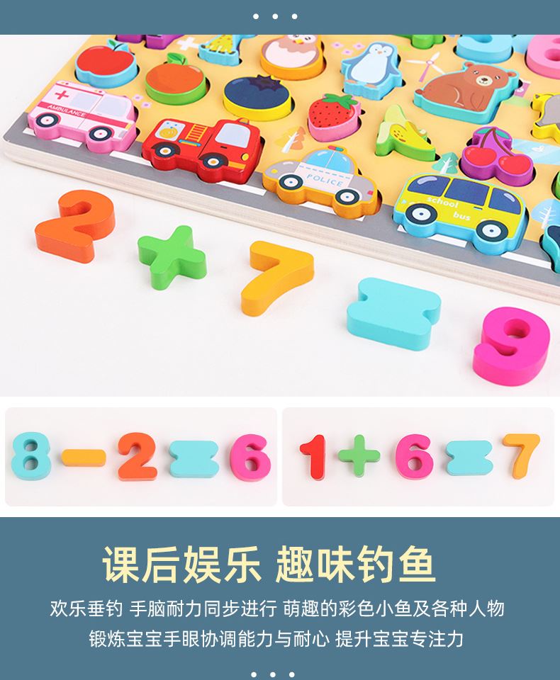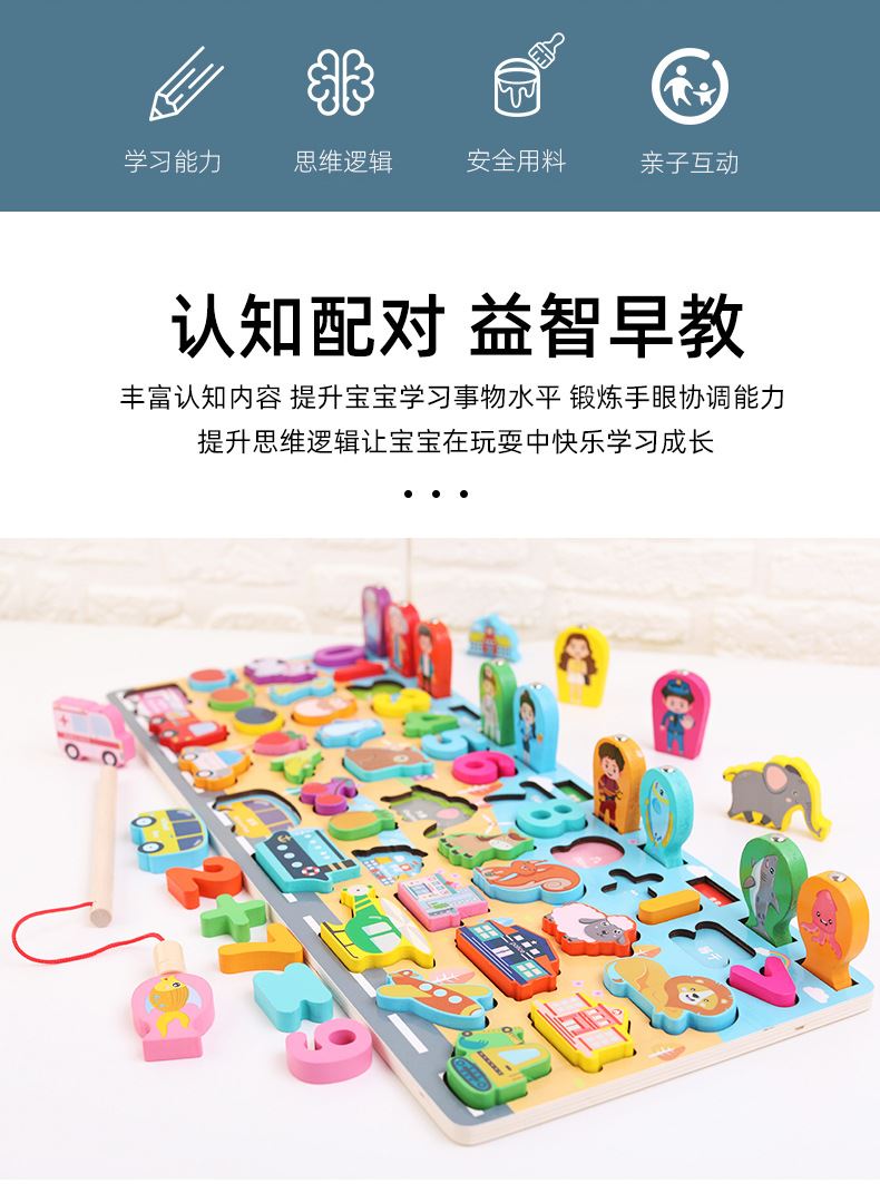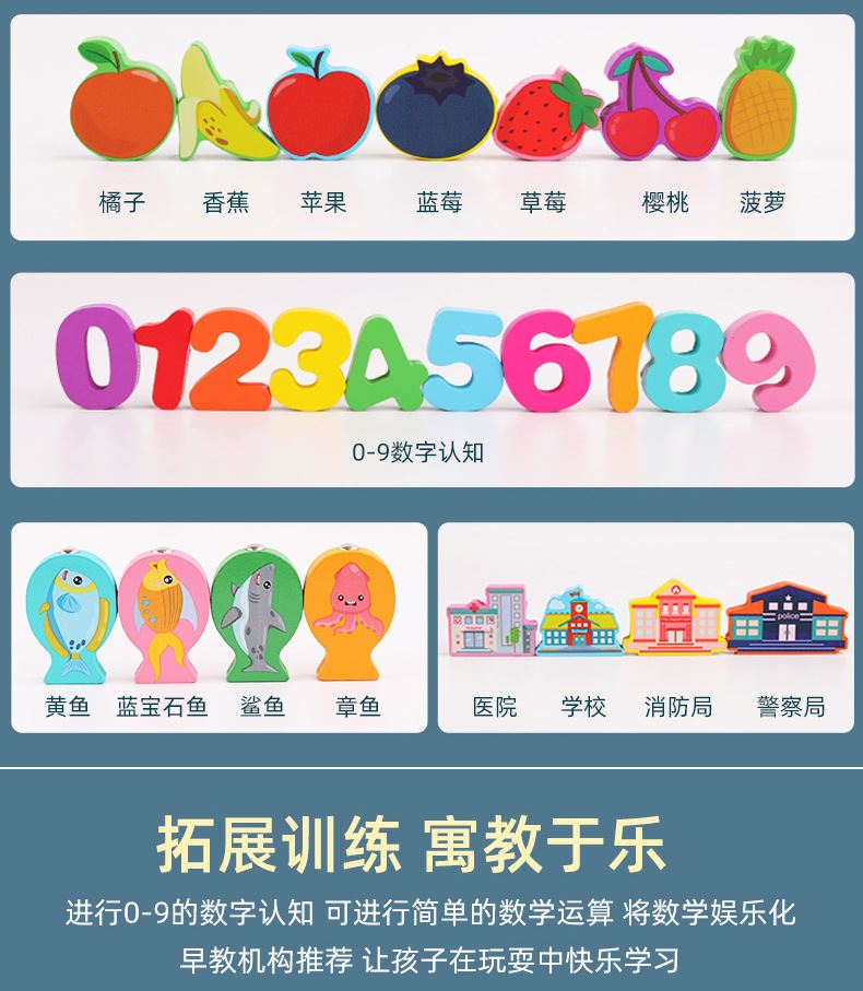 工厂儿童动物数字对数板拼图积木宝宝早教益木质拼板玩具