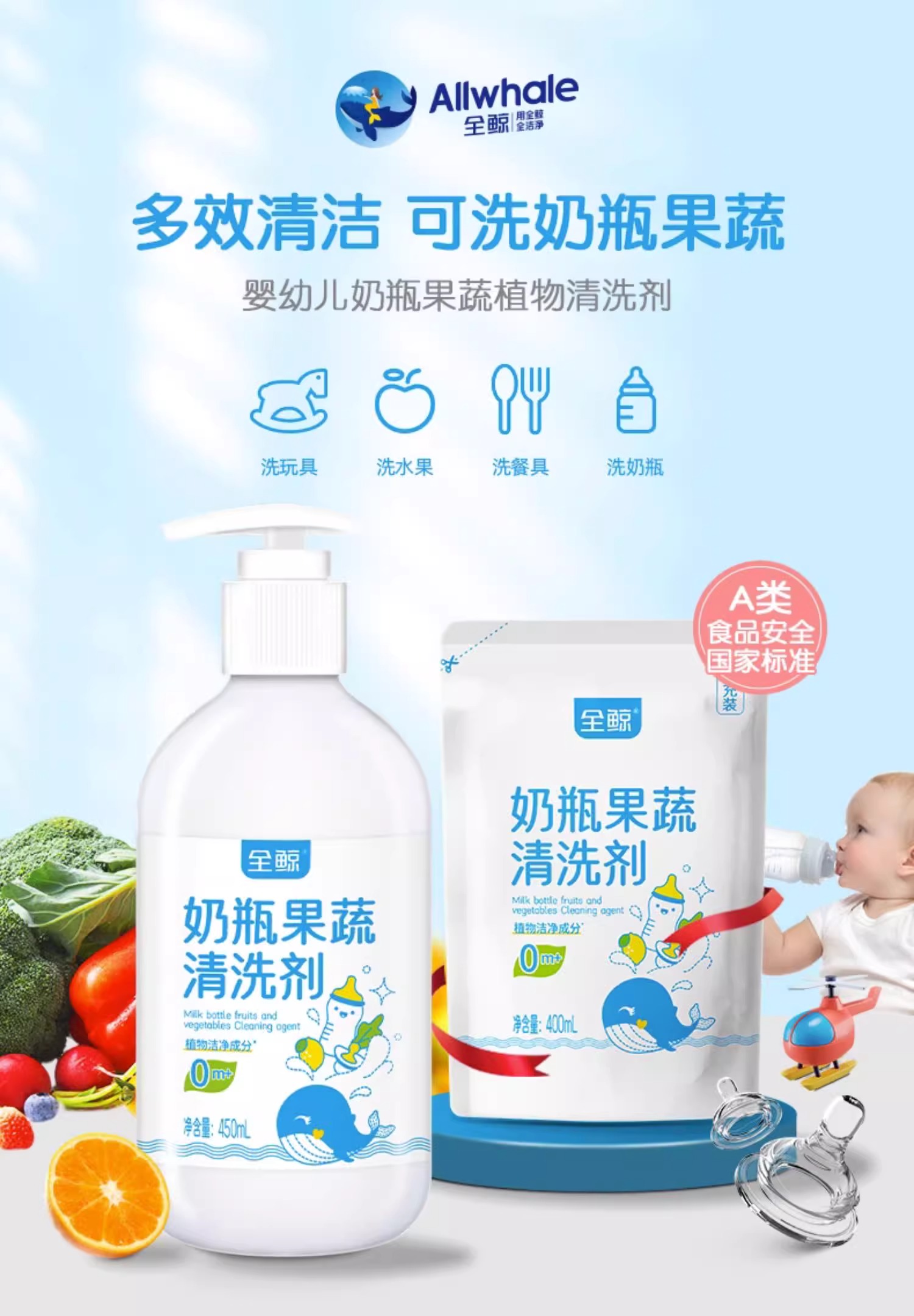 全鲸奶瓶果蔬清洗剂婴儿玩具餐具洗洁精洗水果清洁剂孕妇宝宝专用