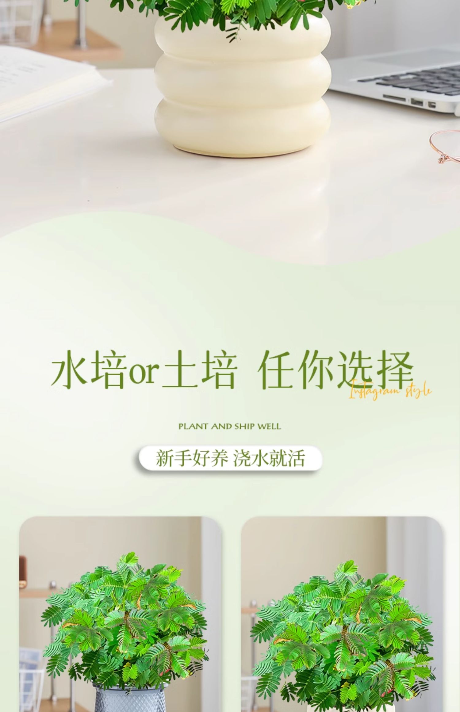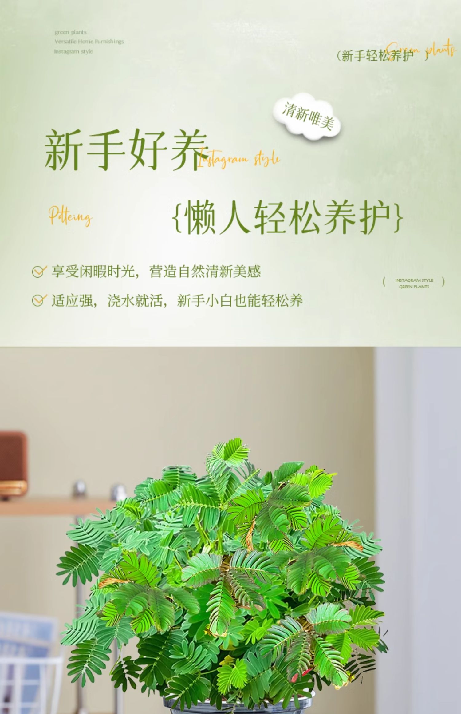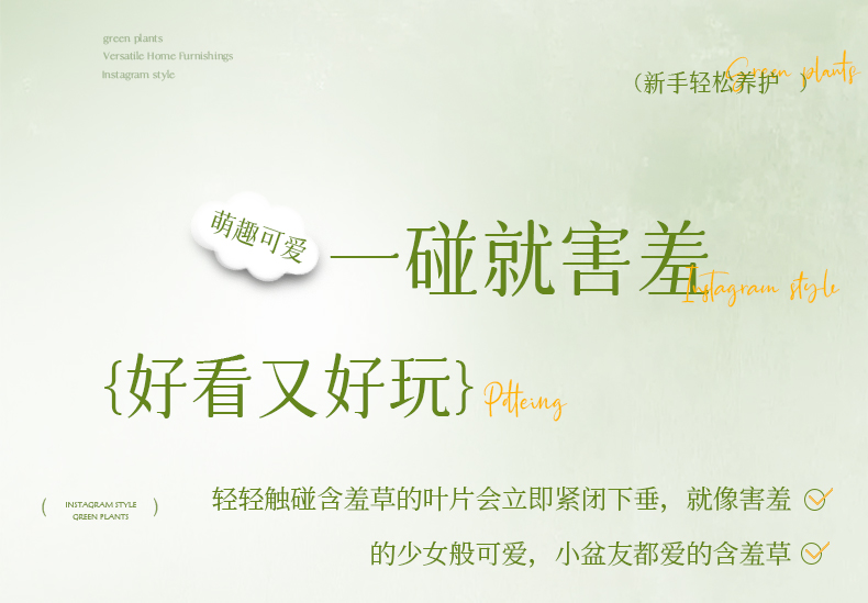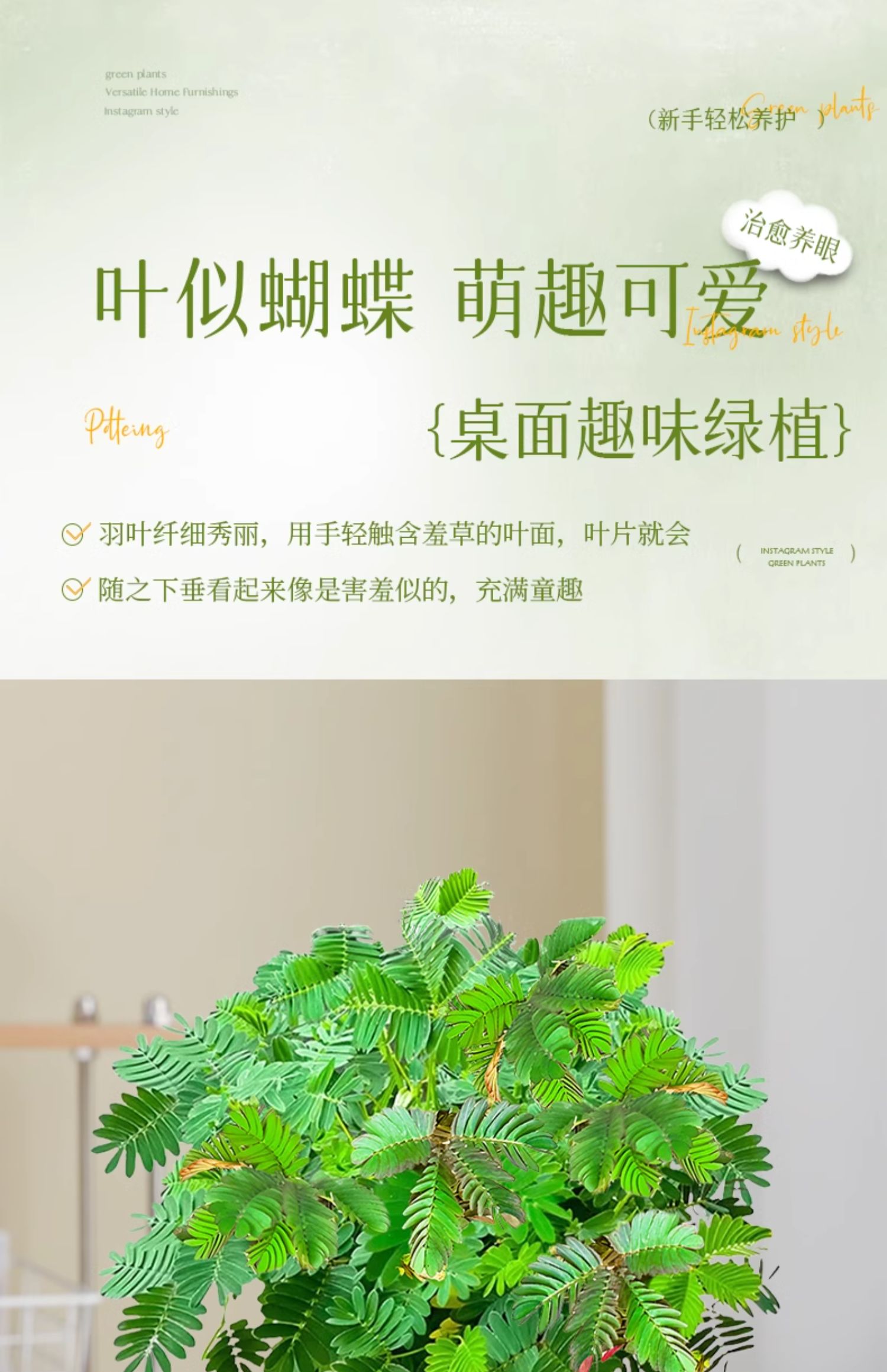 含羞草盆栽室内客厅办公桌面上趣味可爱小绿植害羞草四季好养花卉