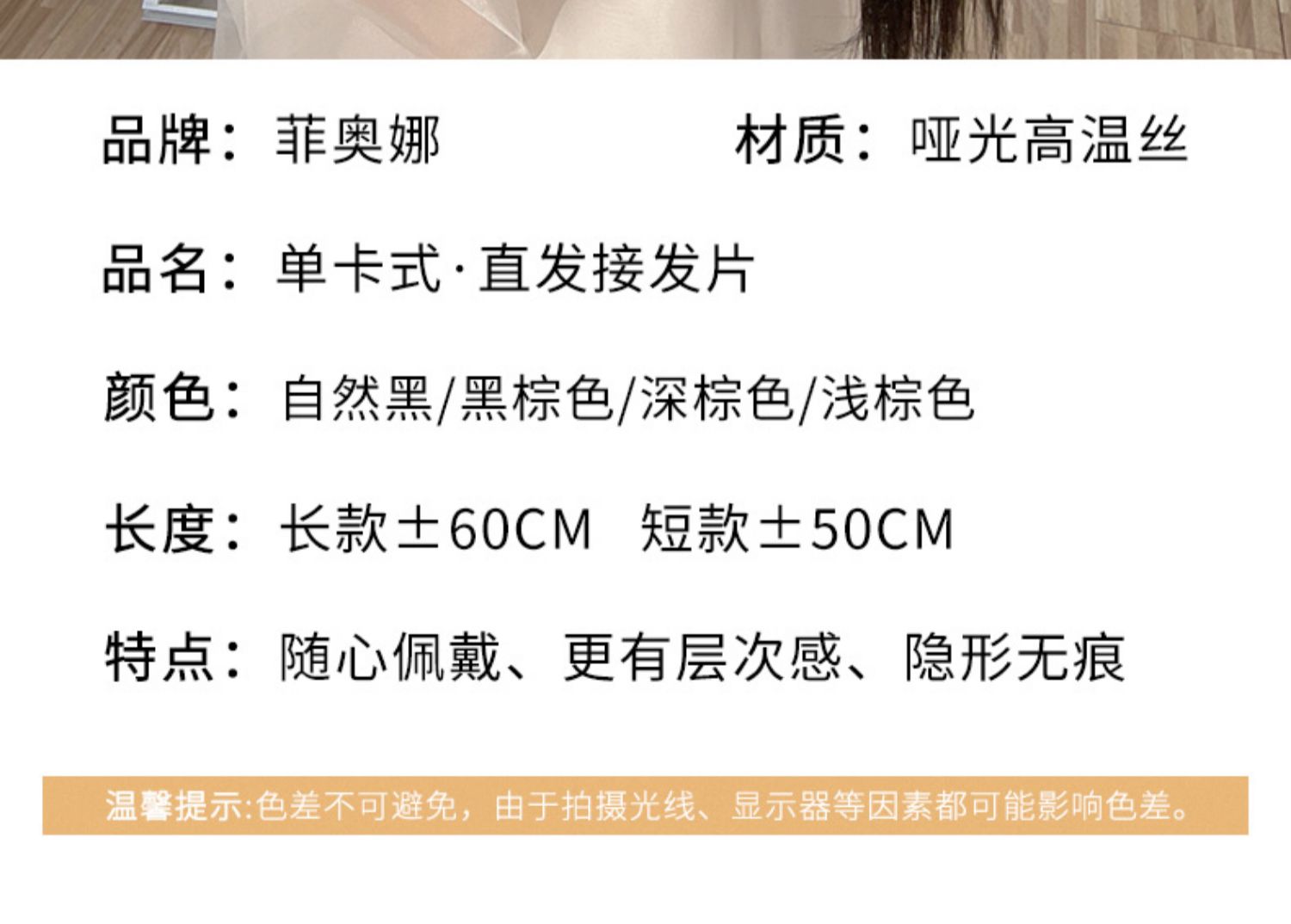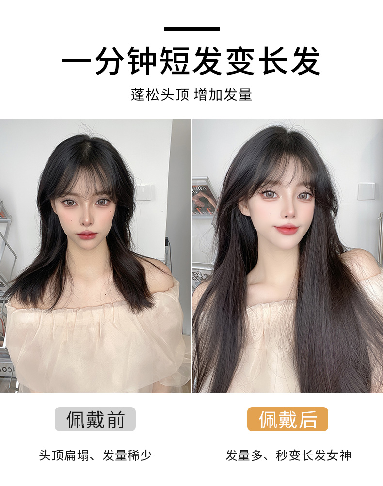 菲奥娜假发片三片式增发量蓬松长直发片短发u型单卡隐形接发片女