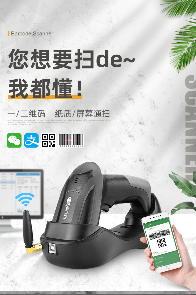 逊镭无线红光扫描枪手机支付宝微信收款扫码枪激光有线条形码一二维码扫描器烟草药店超市收银出入库快递巴枪