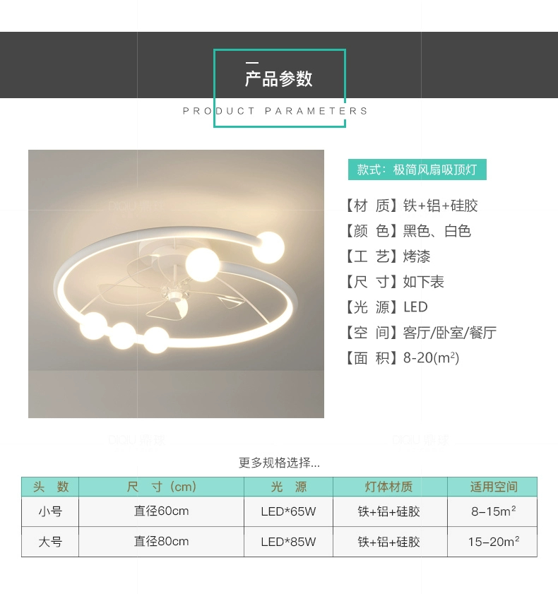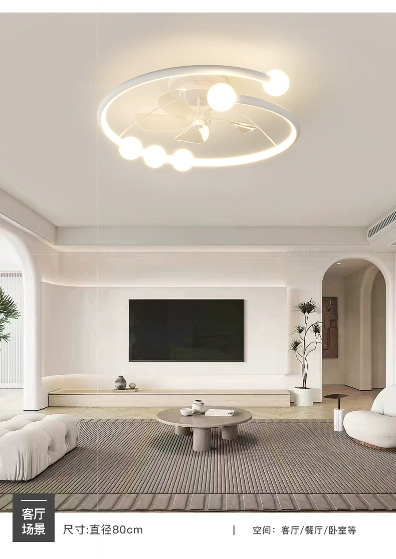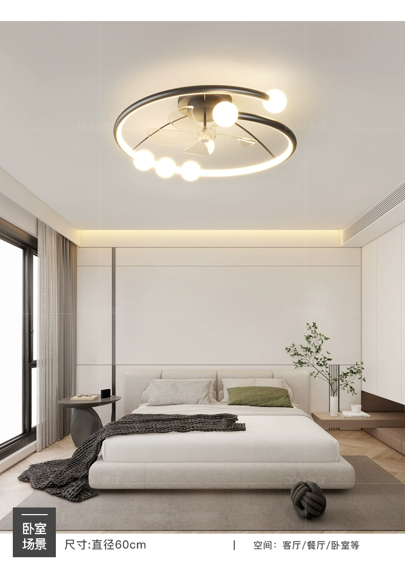 2025新款风扇灯现代简约客厅灯全光谱护眼卧室智能摇头餐厅电扇灯