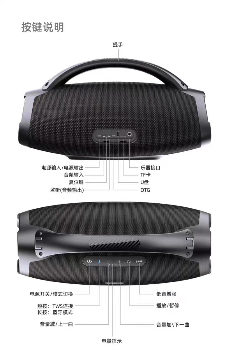 维尔晶D20无线家用户外便携手提K歌广场舞音箱蓝牙音响超重低音炮