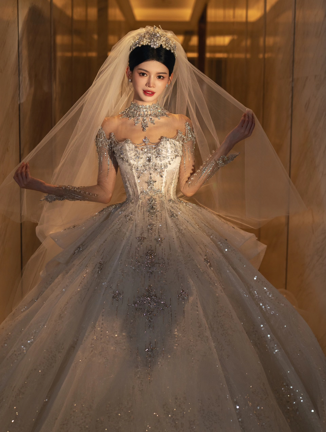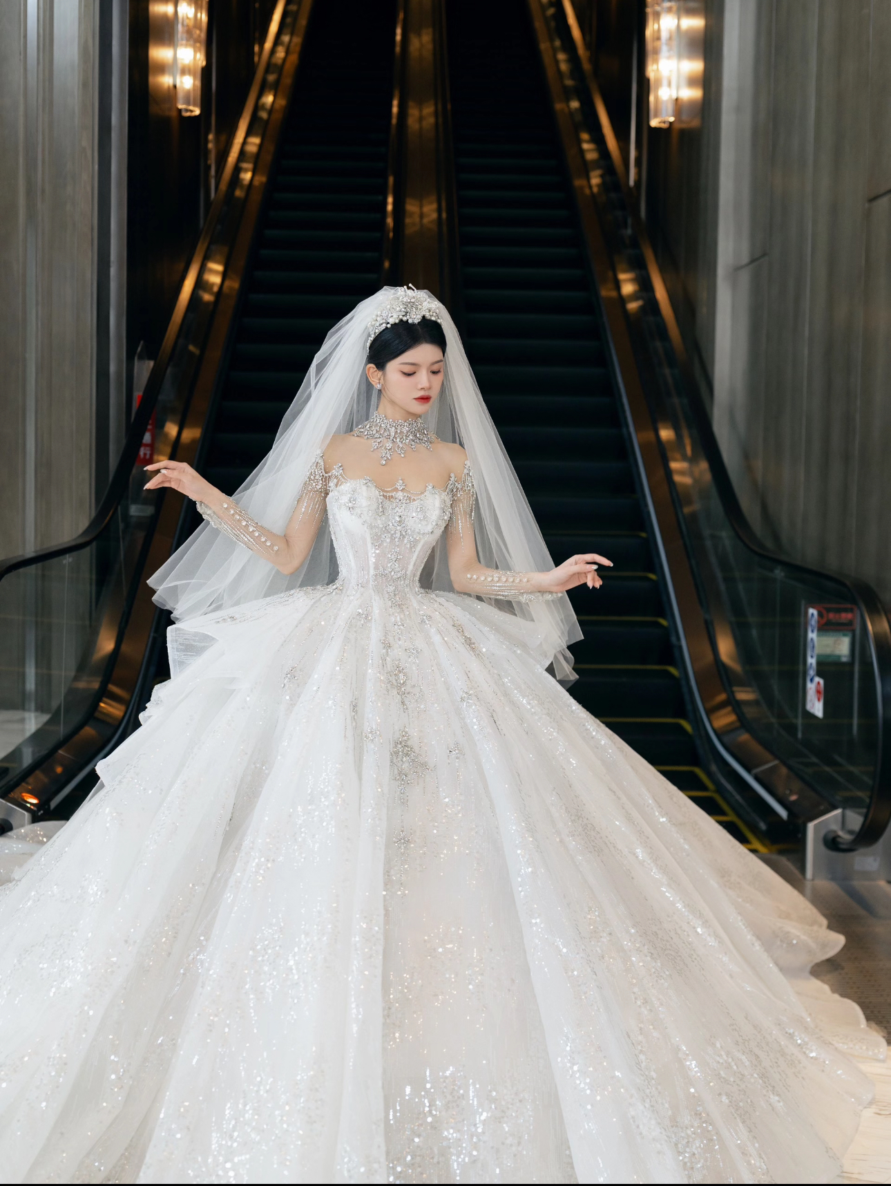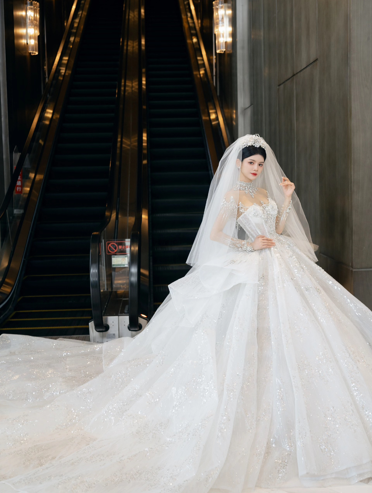 2025新款新娘结婚婚纱重工主纱大拖尾宫廷公主裙