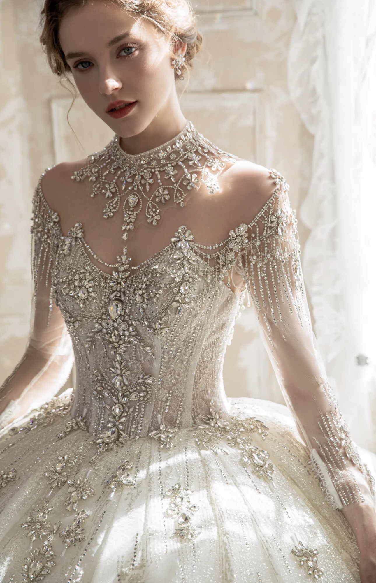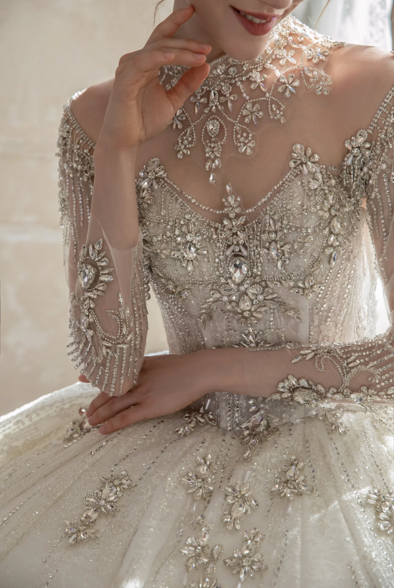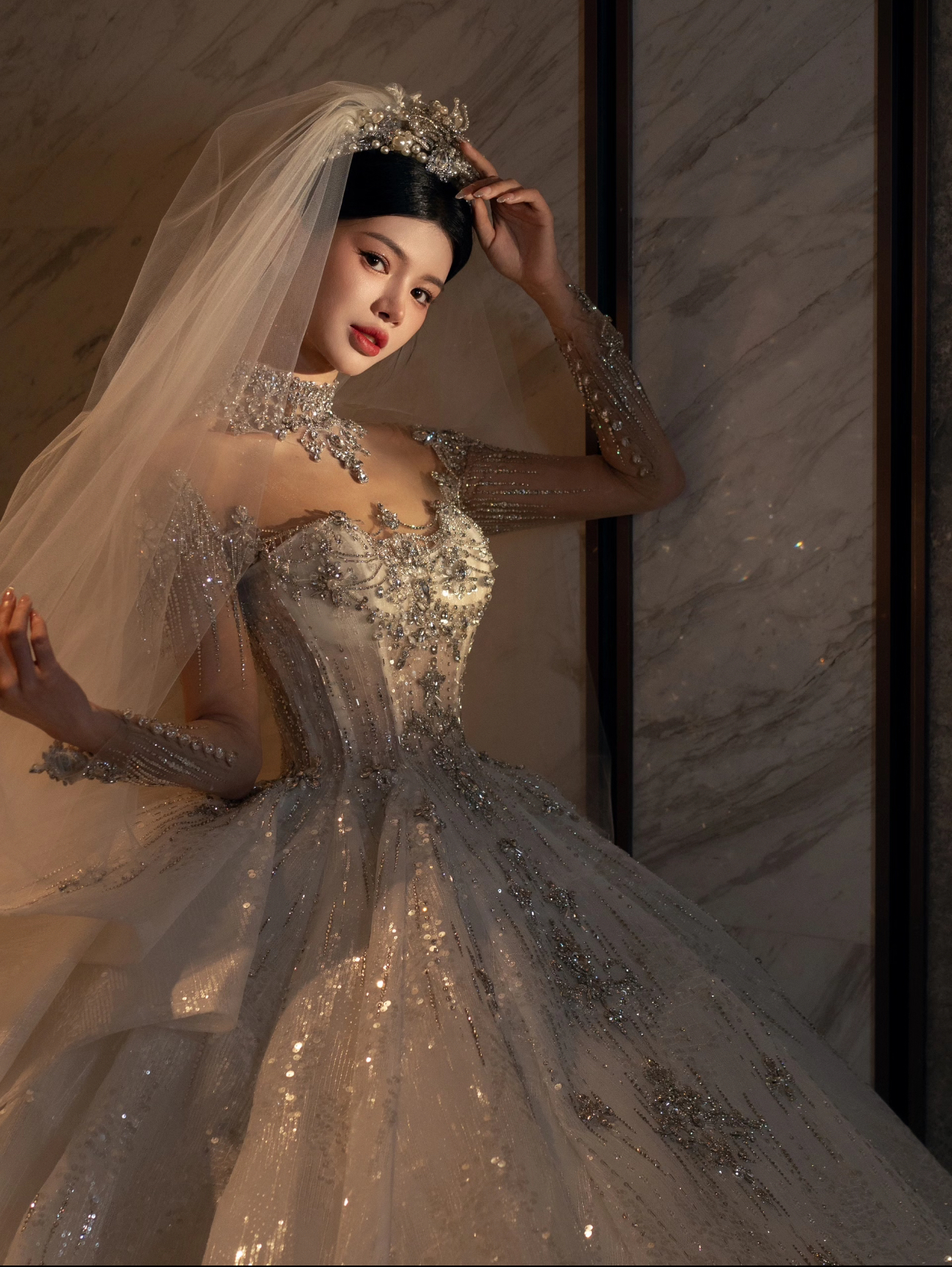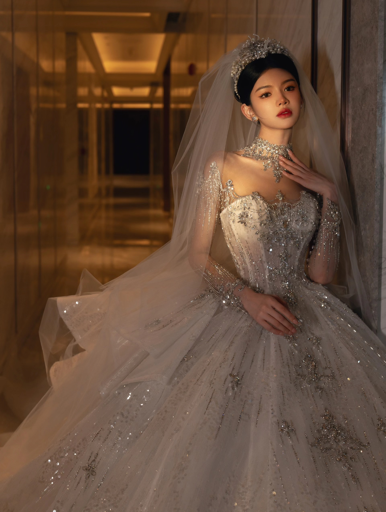 2025新款新娘结婚婚纱重工主纱大拖尾宫廷公主裙