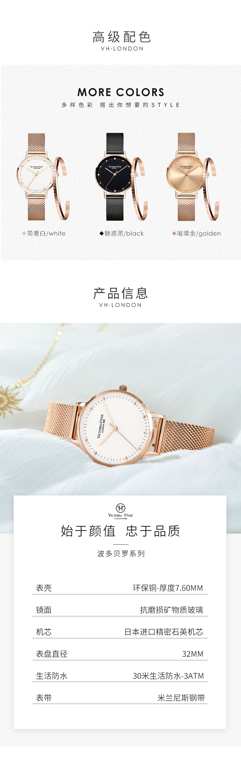Victoria Hyde手表女简约气质小众轻奢女表ins风高级感石英表学生