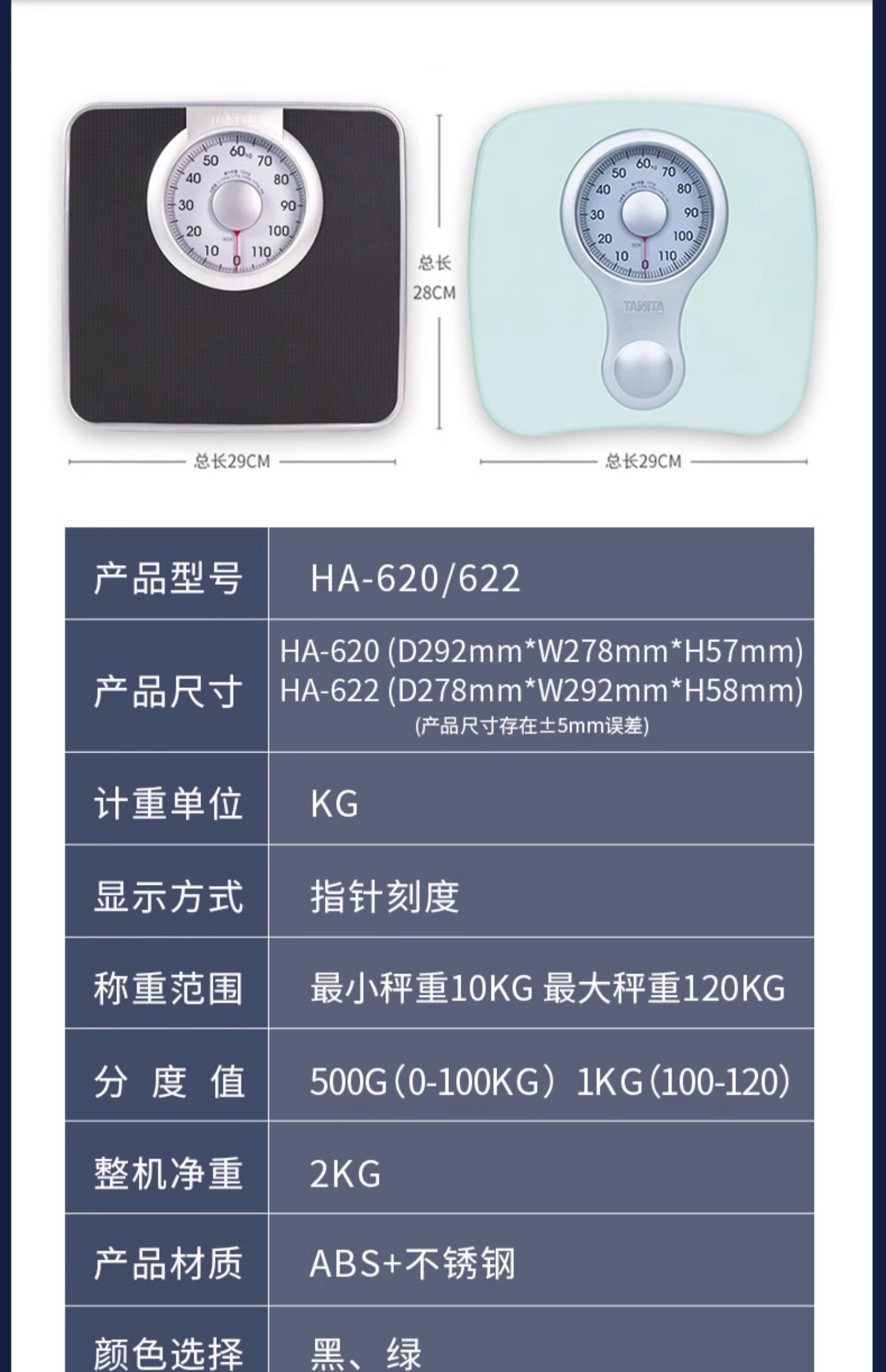日本百利达TANITA机械称家用小型精准减肥人体重秤称重器620HA622