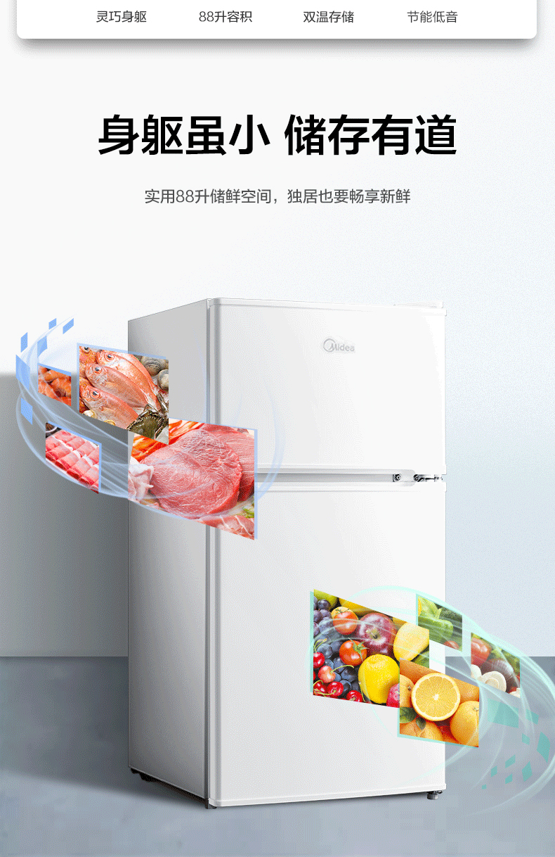 美的88升双门小型冰箱两门家用办公室节能电租房宿舍冷冻藏