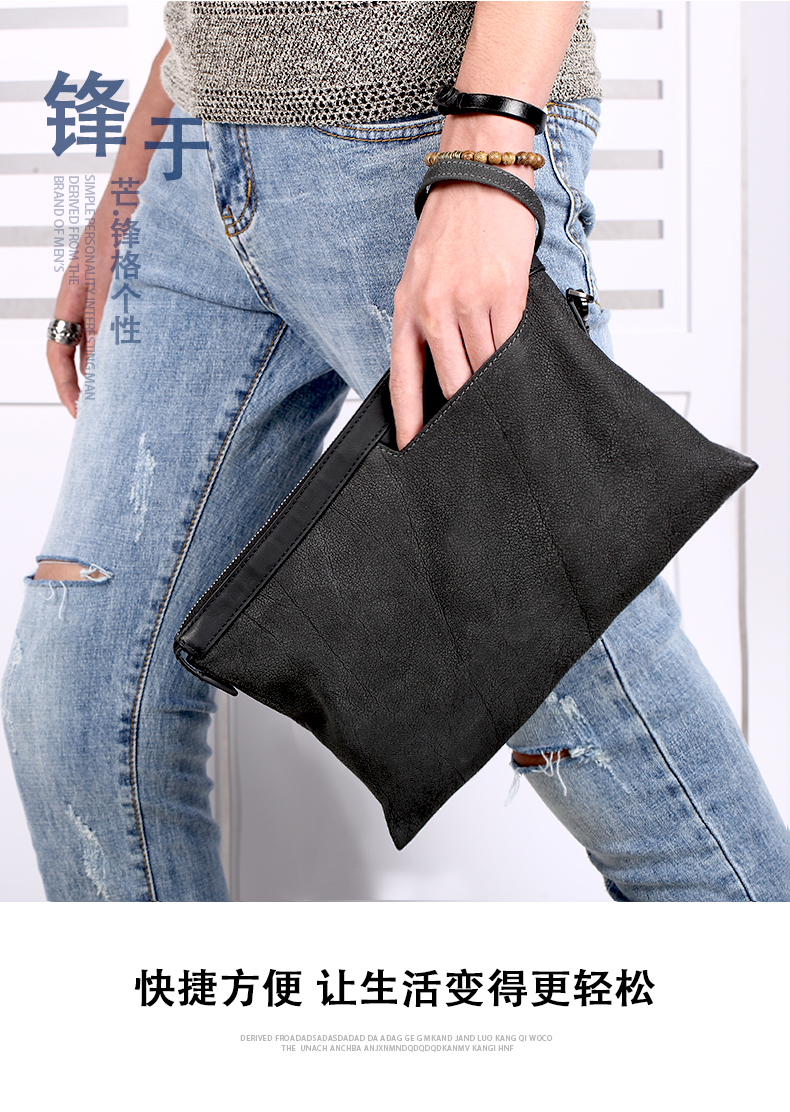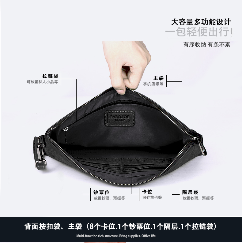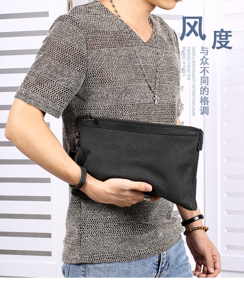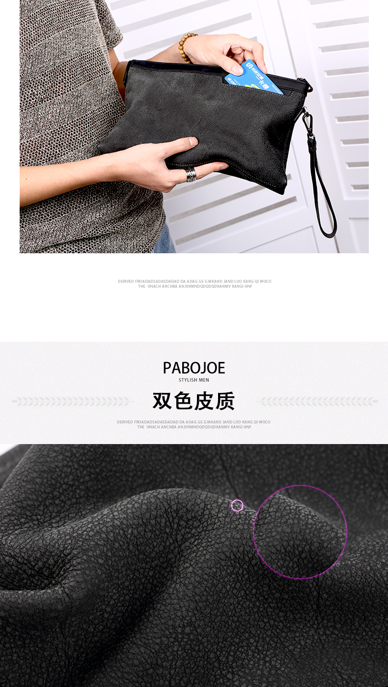 派保爵时尚个性手包男真皮简约男士手拿包牛皮手抓包休闲信封男包