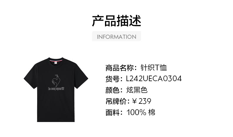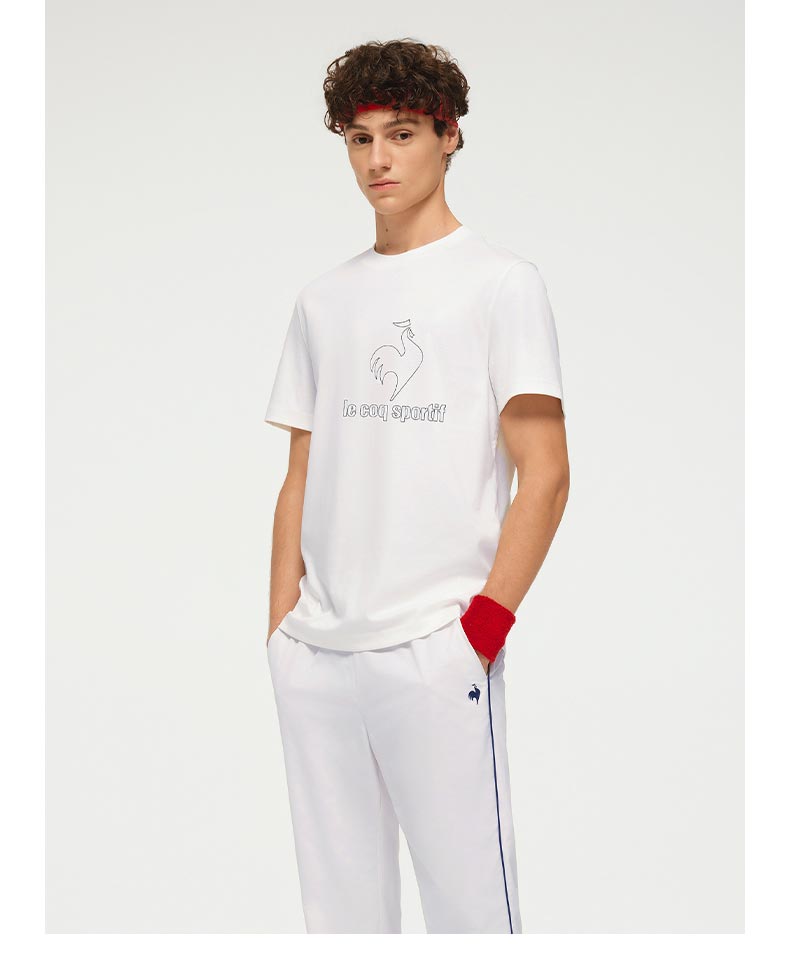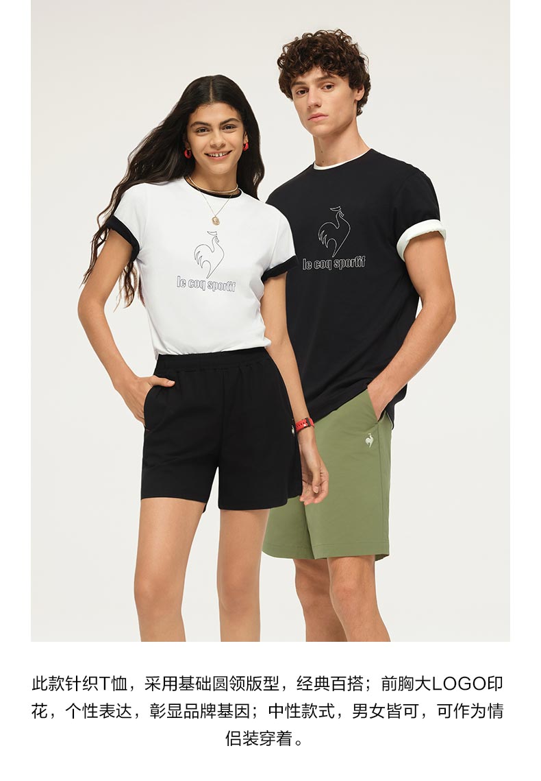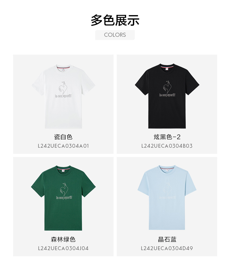 乐卡克法国公鸡夏季男女同款运动舒适圆领针织休闲短袖T恤纯棉白
