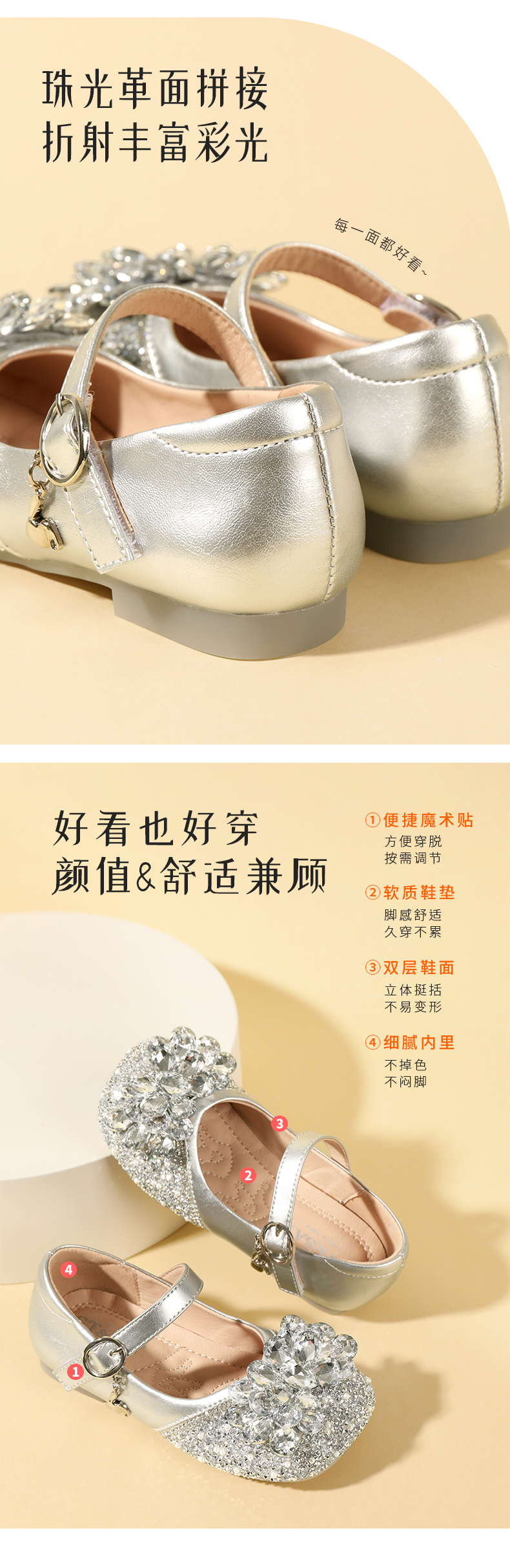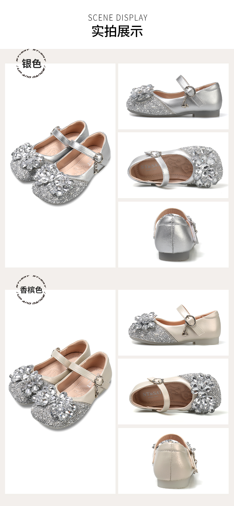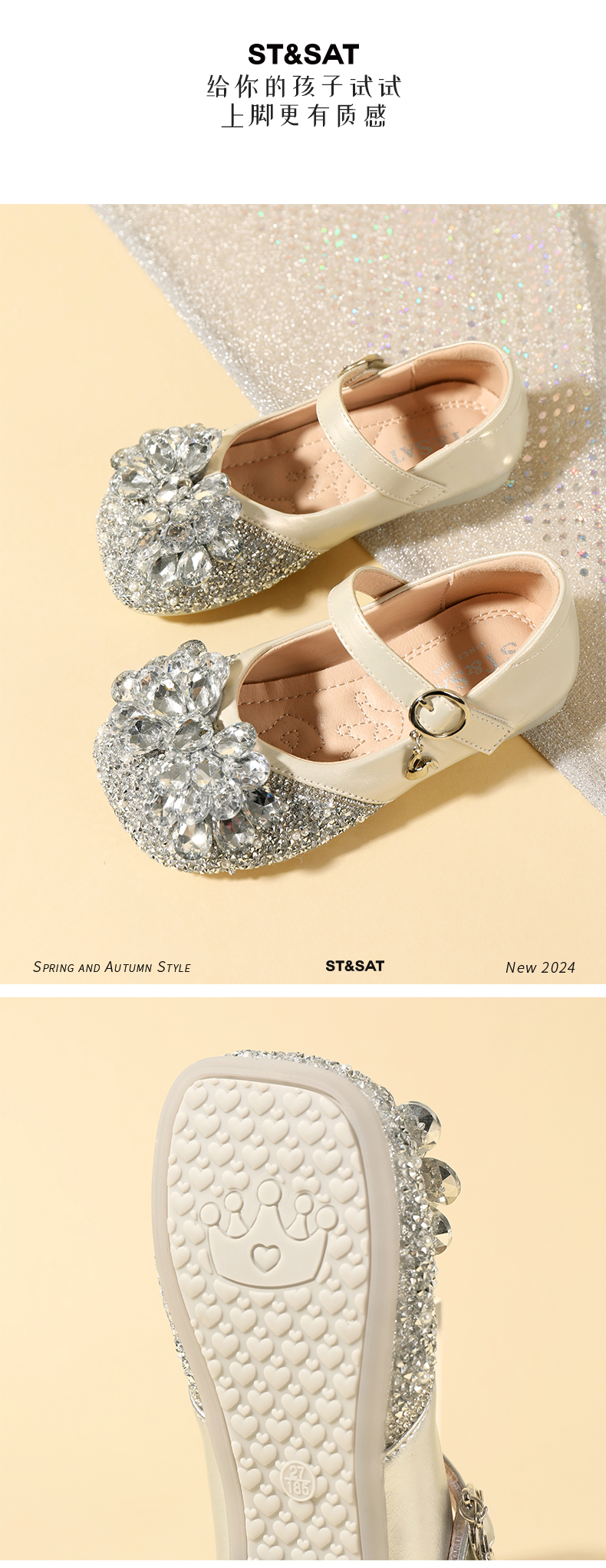 星期六女童公主鞋儿童水晶鞋春秋新款软底水钻闪亮皮鞋配礼服裙子