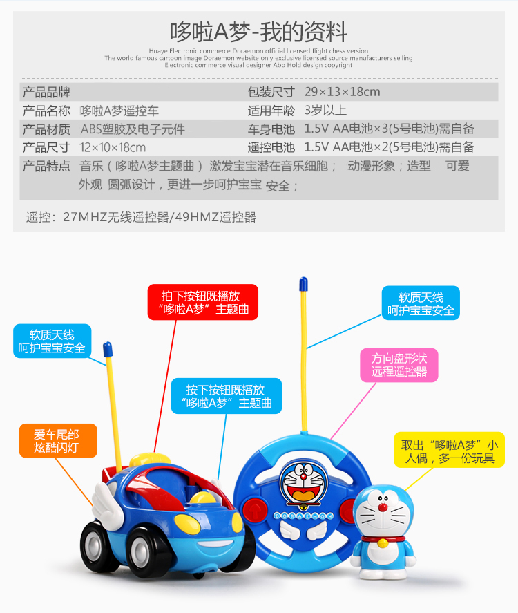 哆啦A梦官方旗舰店机器猫公仔玩具电动耐摔耐撞遥控汽车礼物车模