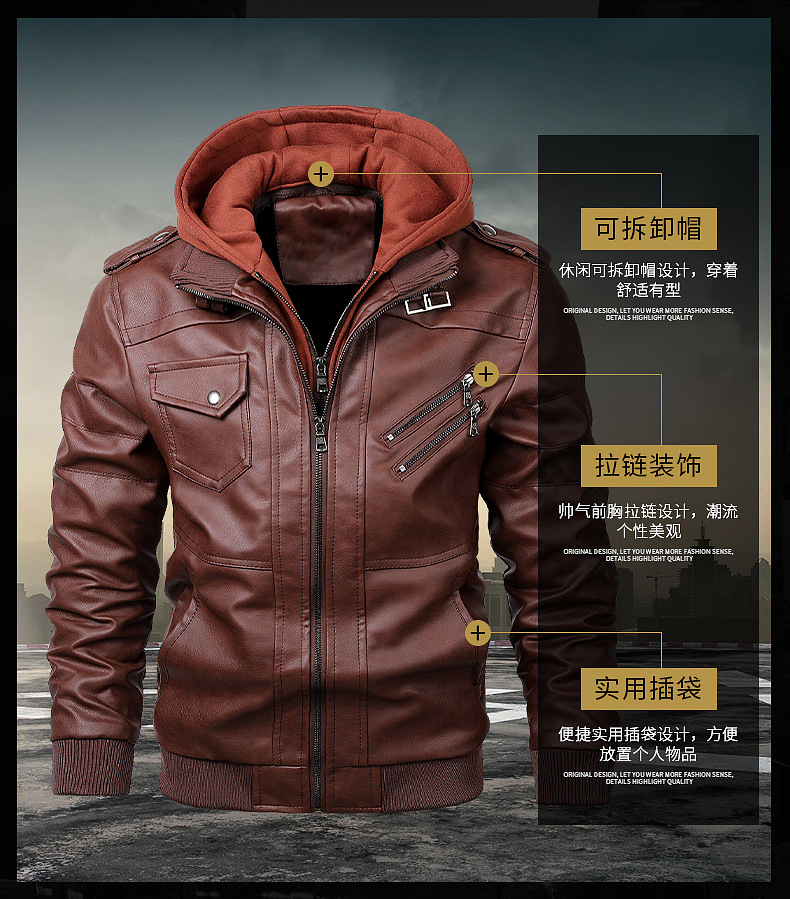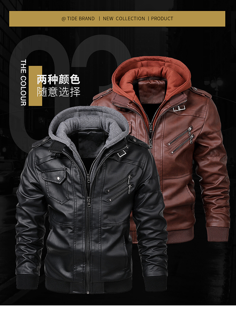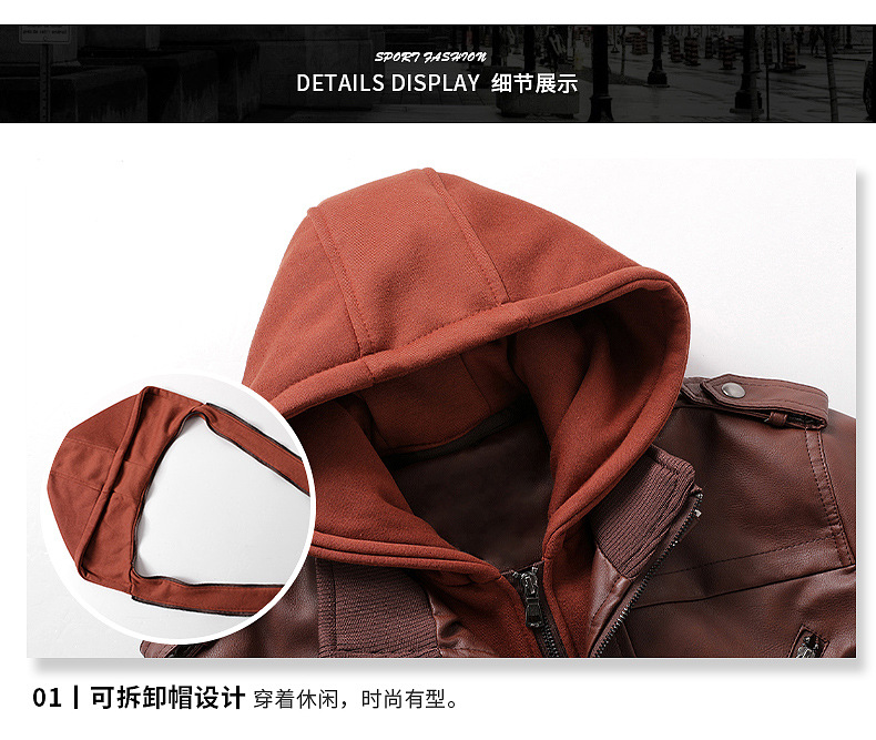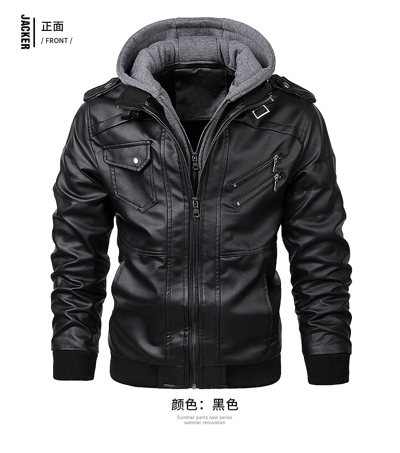 欧美捡漏连帽机车服皮衣2024秋季新款男士PU皮夹克宽松休闲皮外套