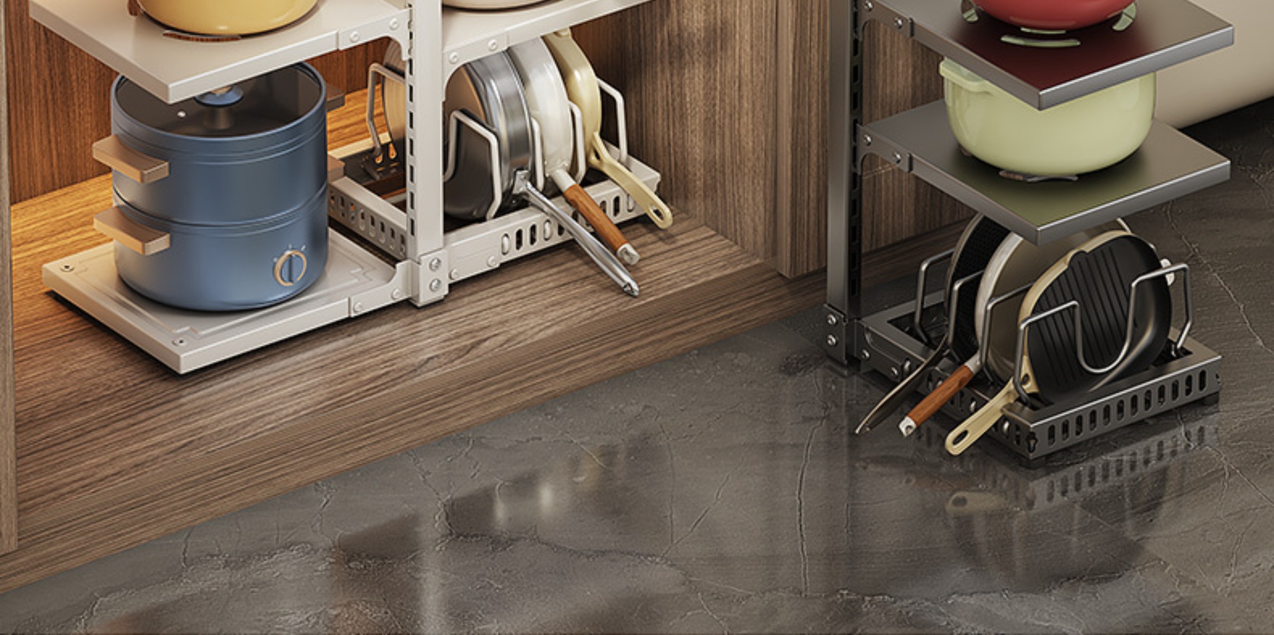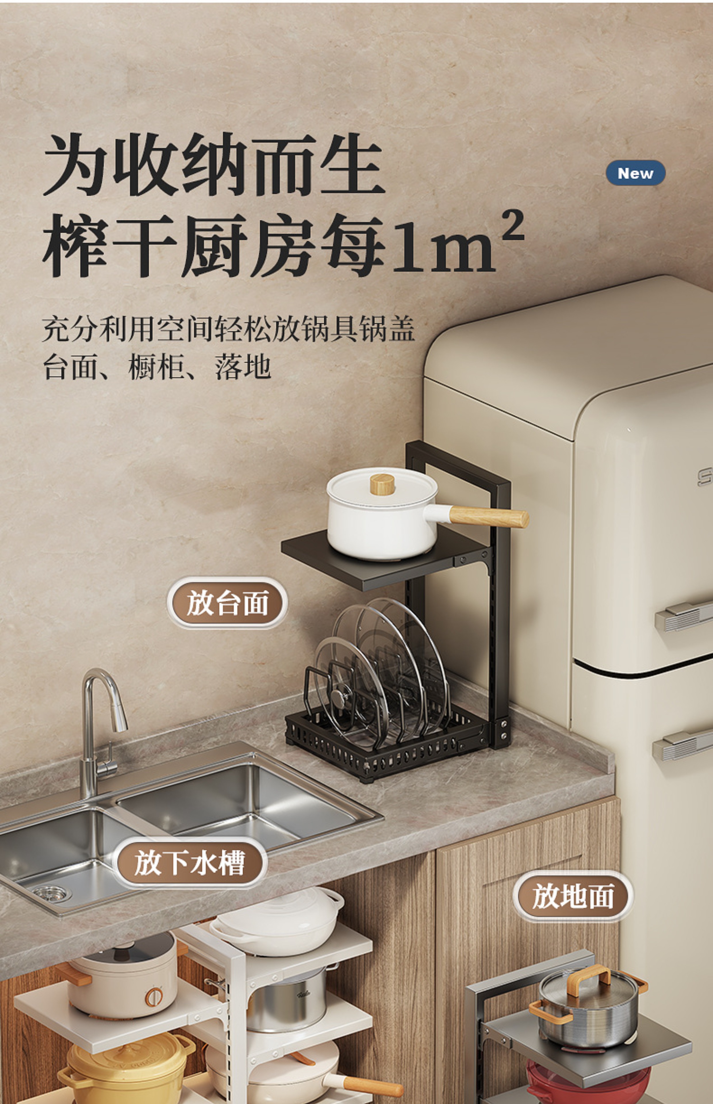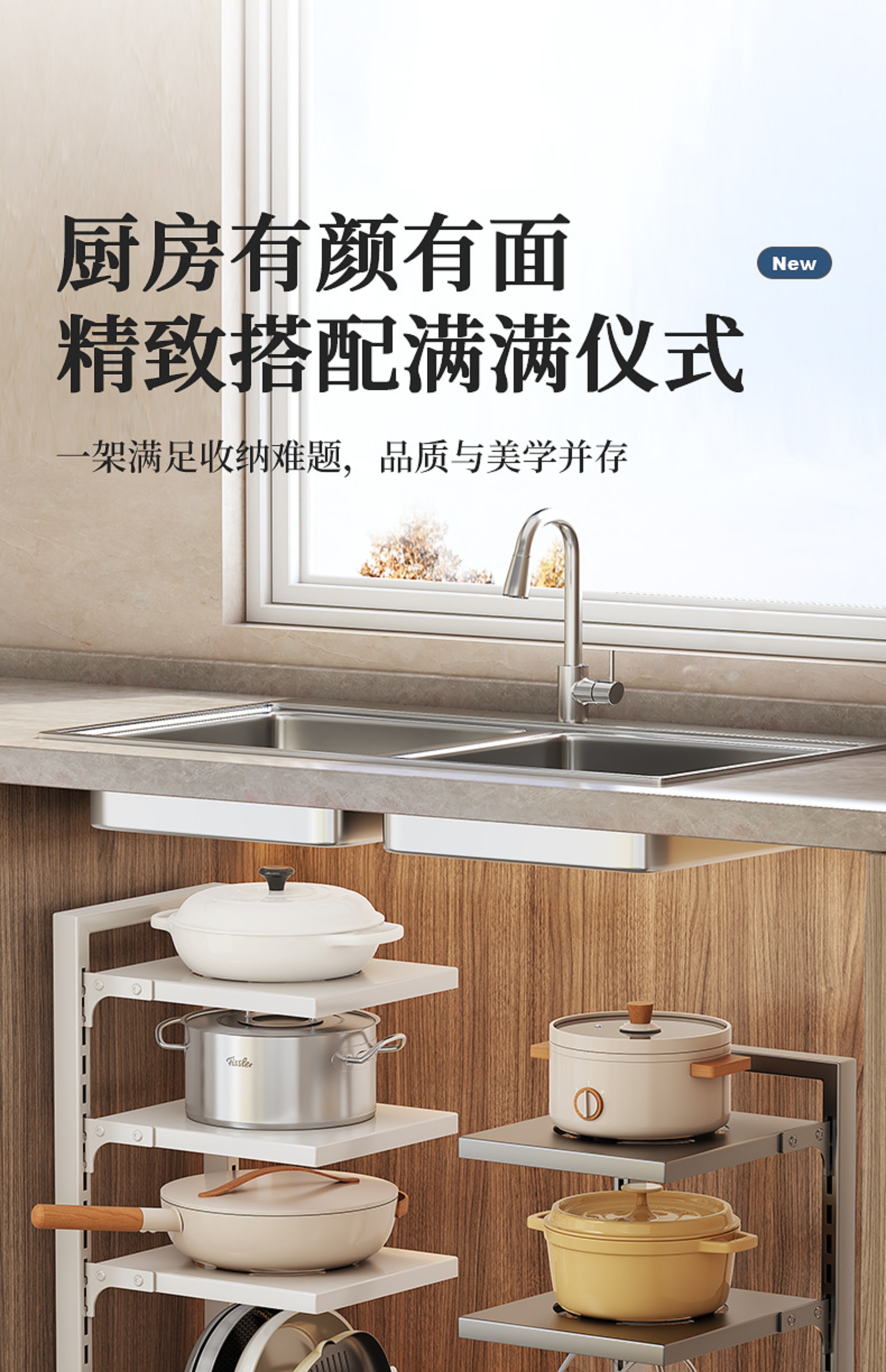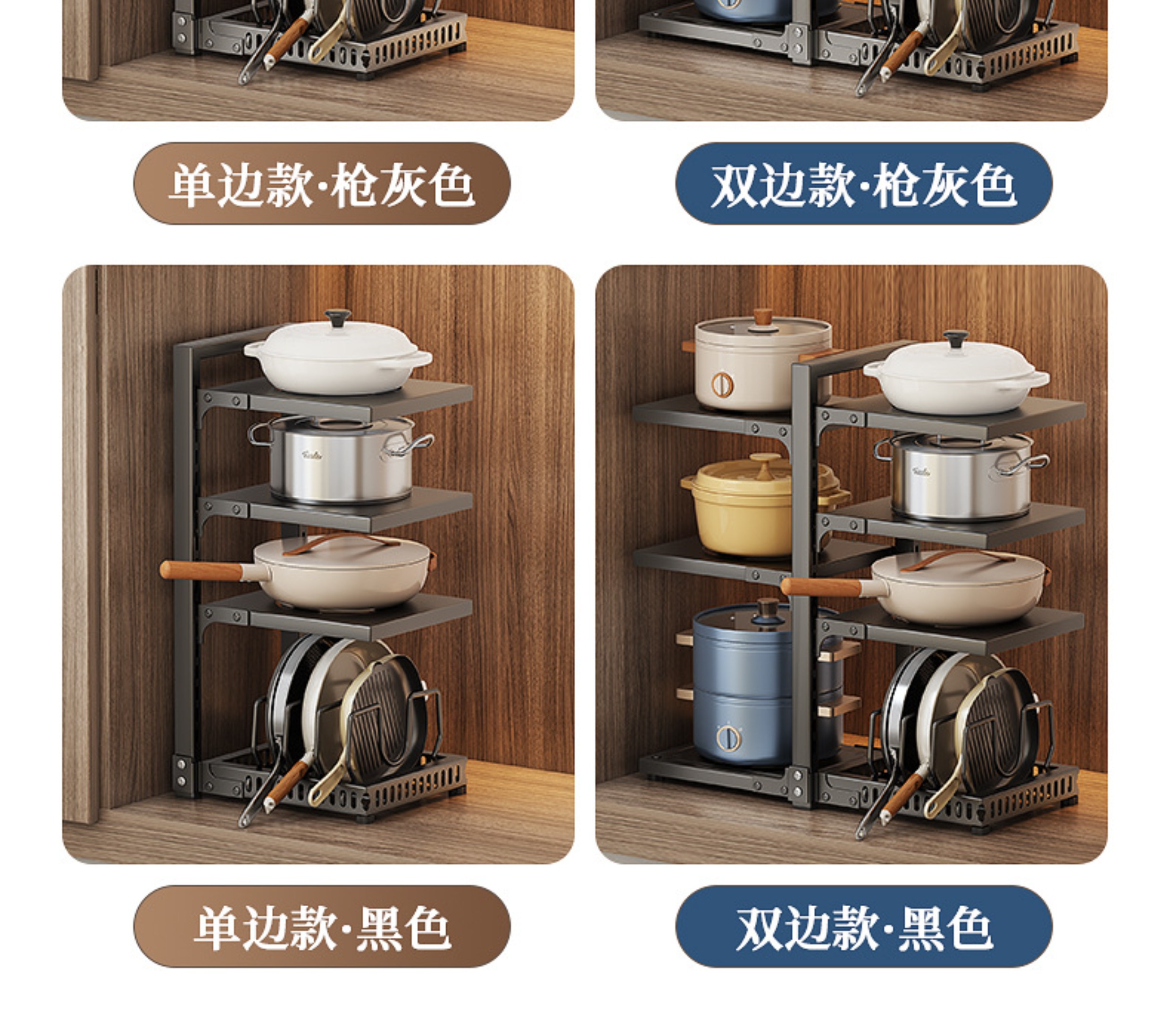 锅架厨房置物架下水槽多层家用可调节放锅架橱柜内分层锅具收纳架