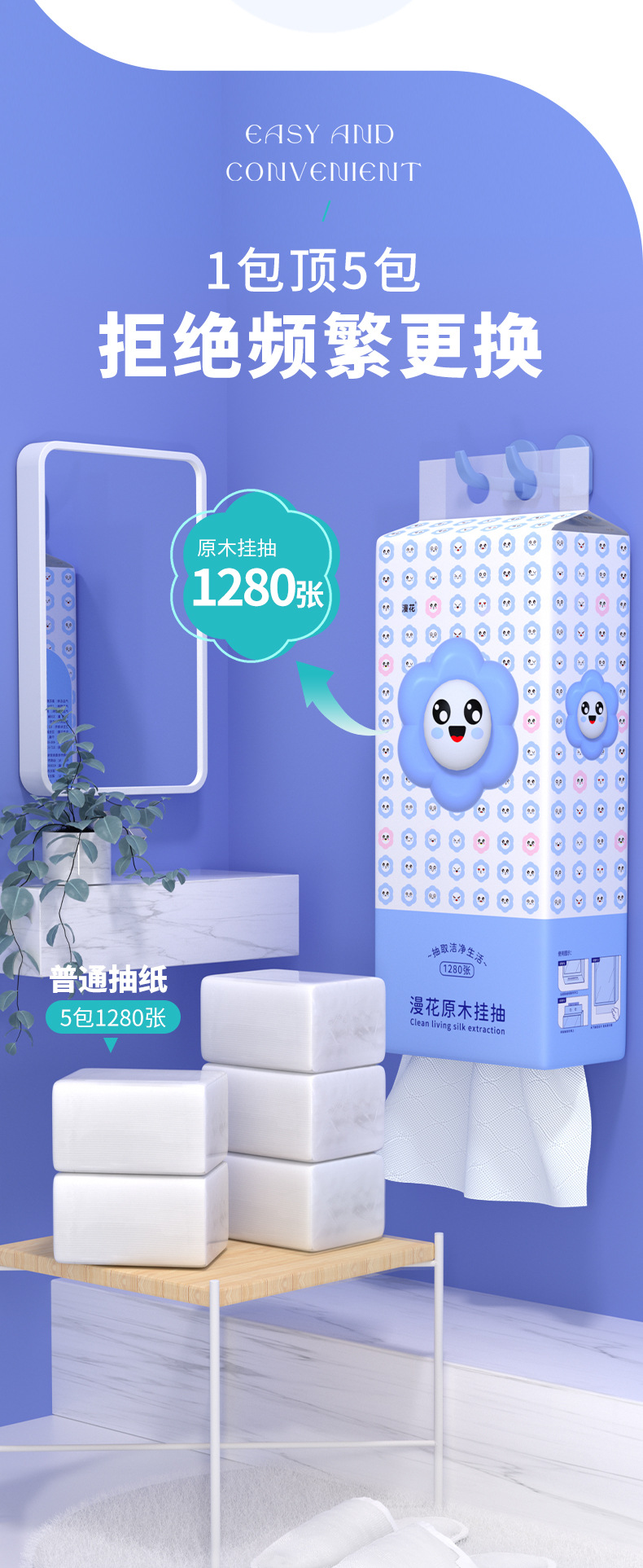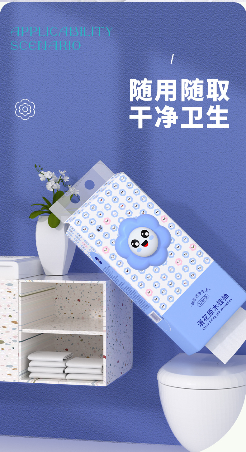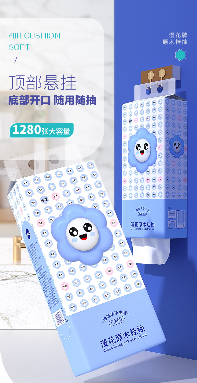 漫花悬挂式抽纸厨房卫生间专用纸抽实惠装家用纸巾整箱厕纸