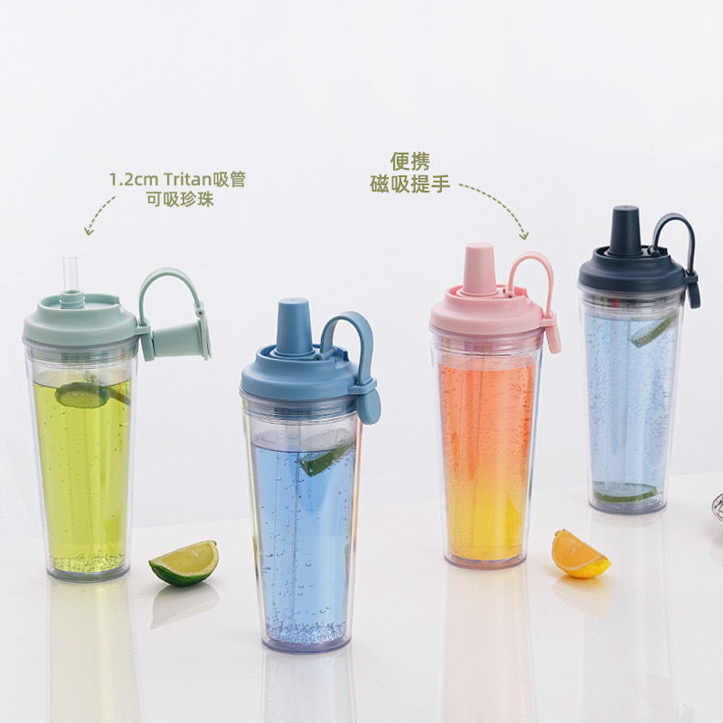 2025新款奶茶杯盖子保温密封盖便携磁吸提手不锈钢吸管杯配件
