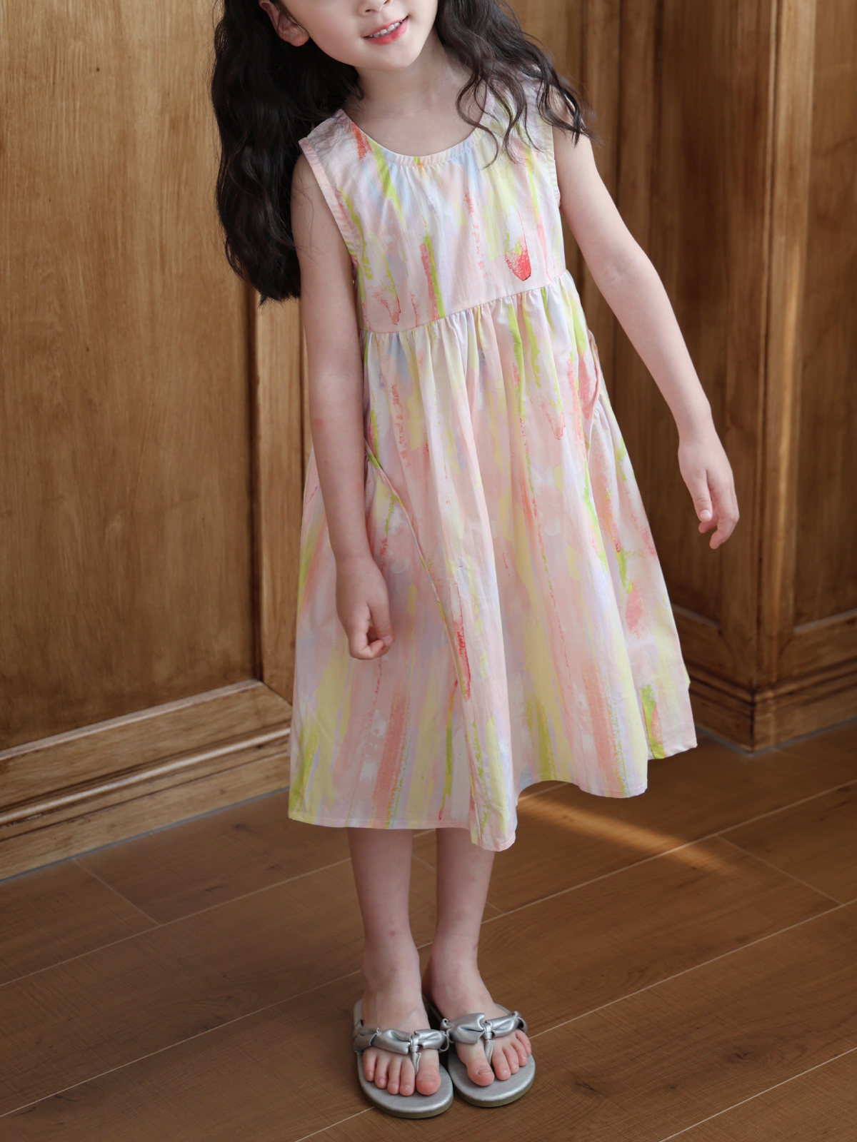 60支 精梳棉 女童背心连衣裙 圆领数码印花裙 中大童 夏款