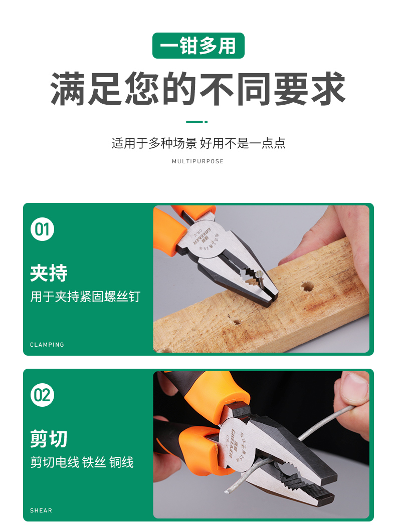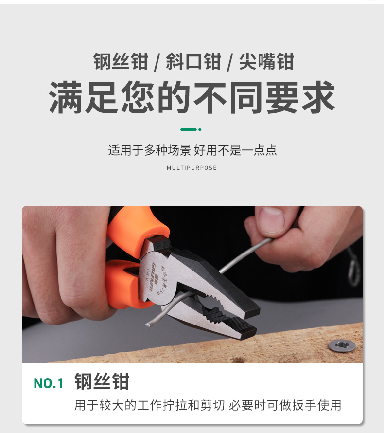 绿林老虎钳电工专用多功能钢丝钳家用省力手钳子五金工具大全钳子