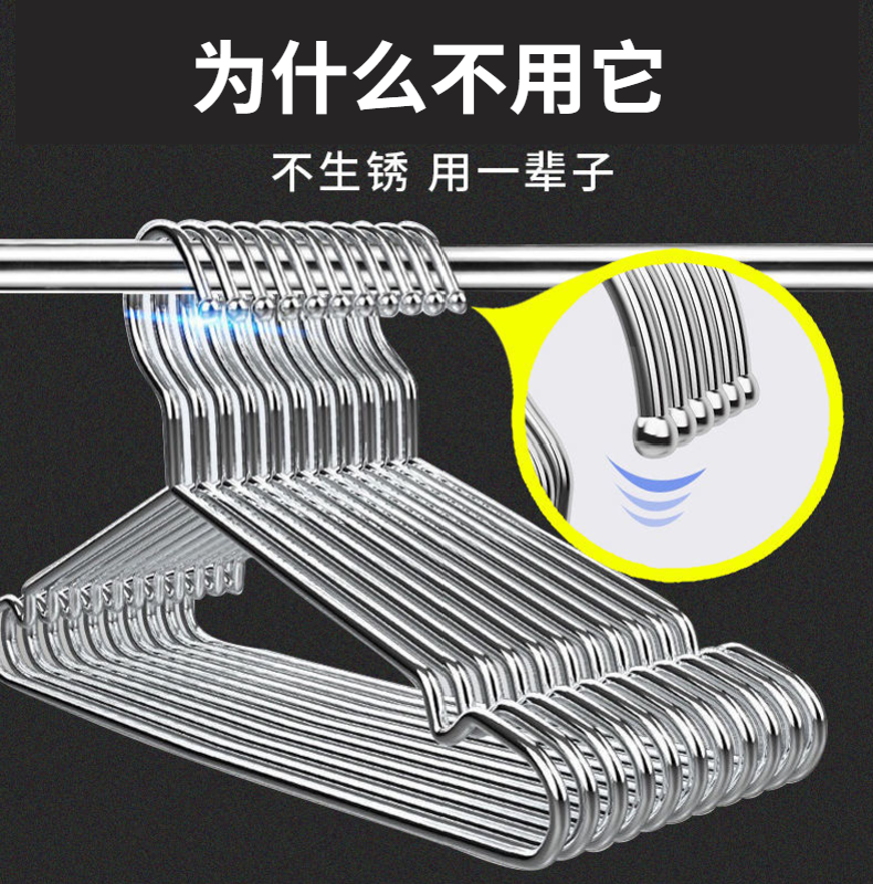 304不锈钢晾衣架子加粗加厚晒衣服撑子家用挂衣架子凉衣儿童挂钩
