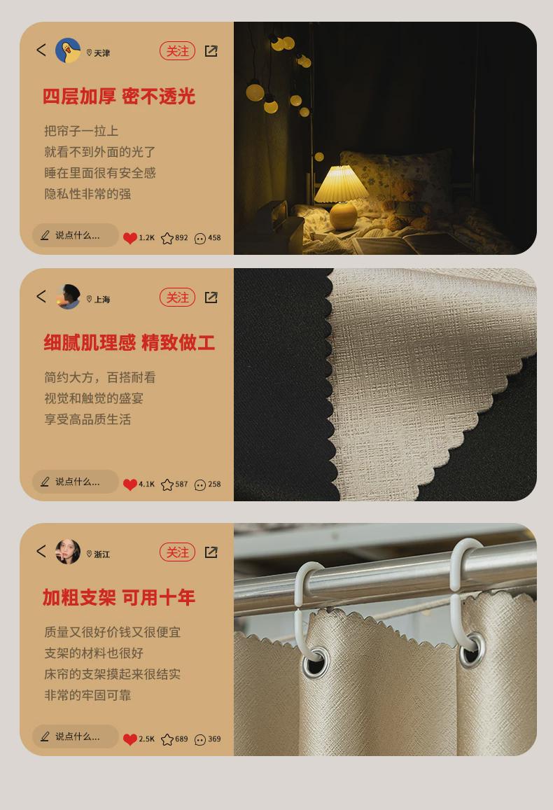 4R9Z强遮光床帘学生宿舍上铺下铺围帘寝室加厚全遮挡帘子窗帘床围