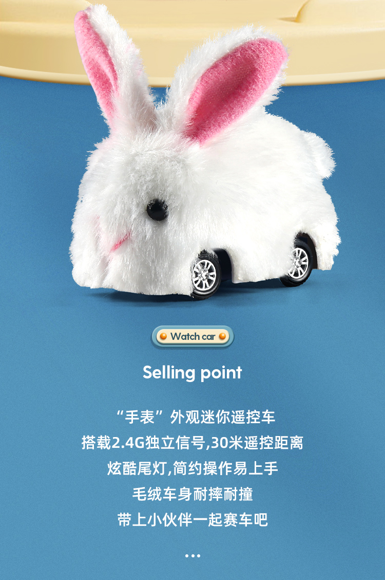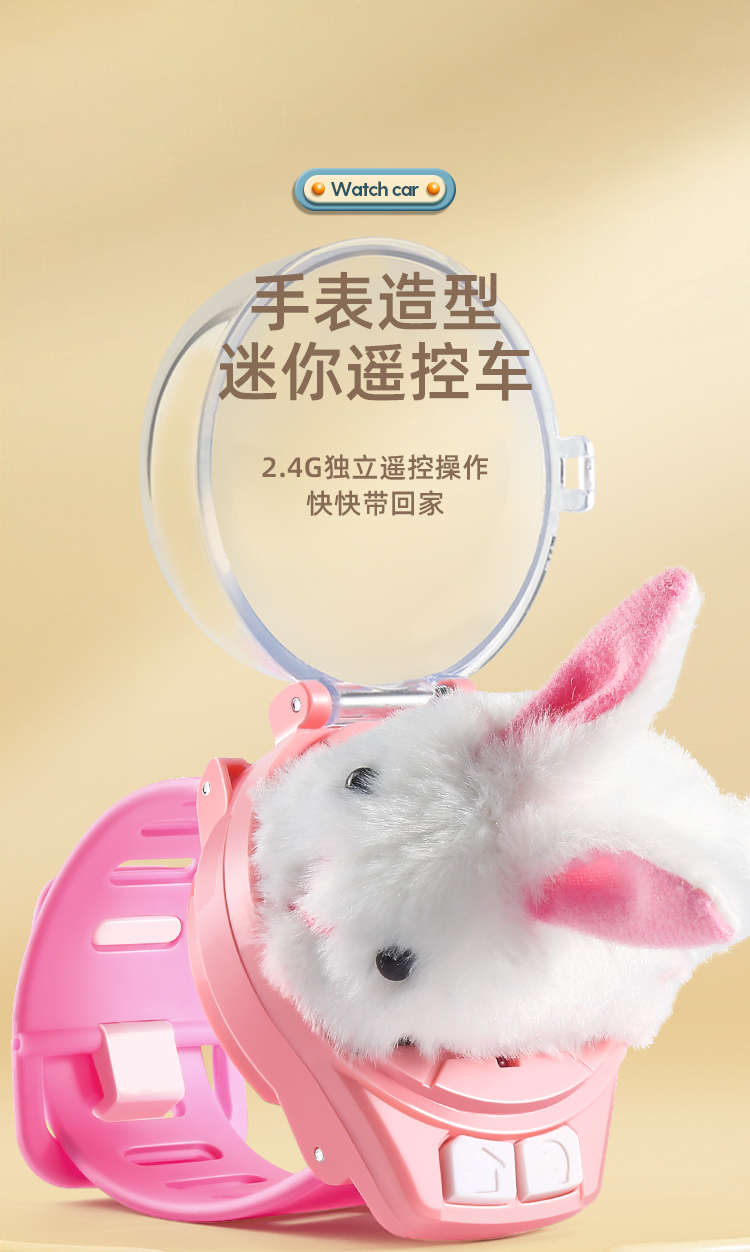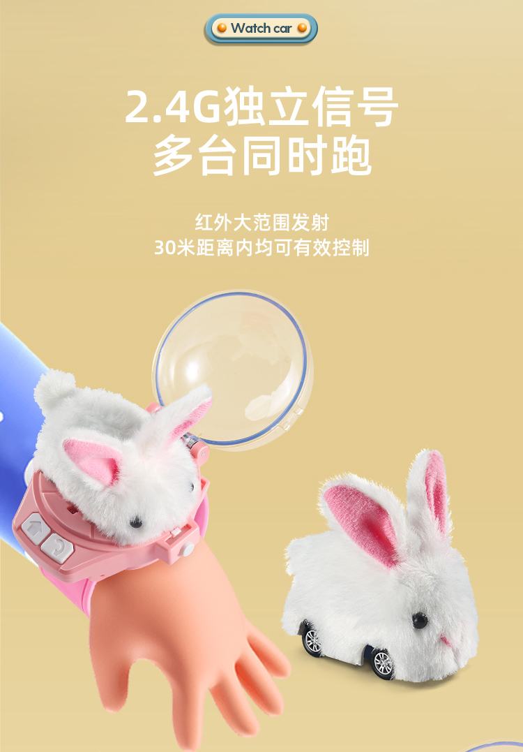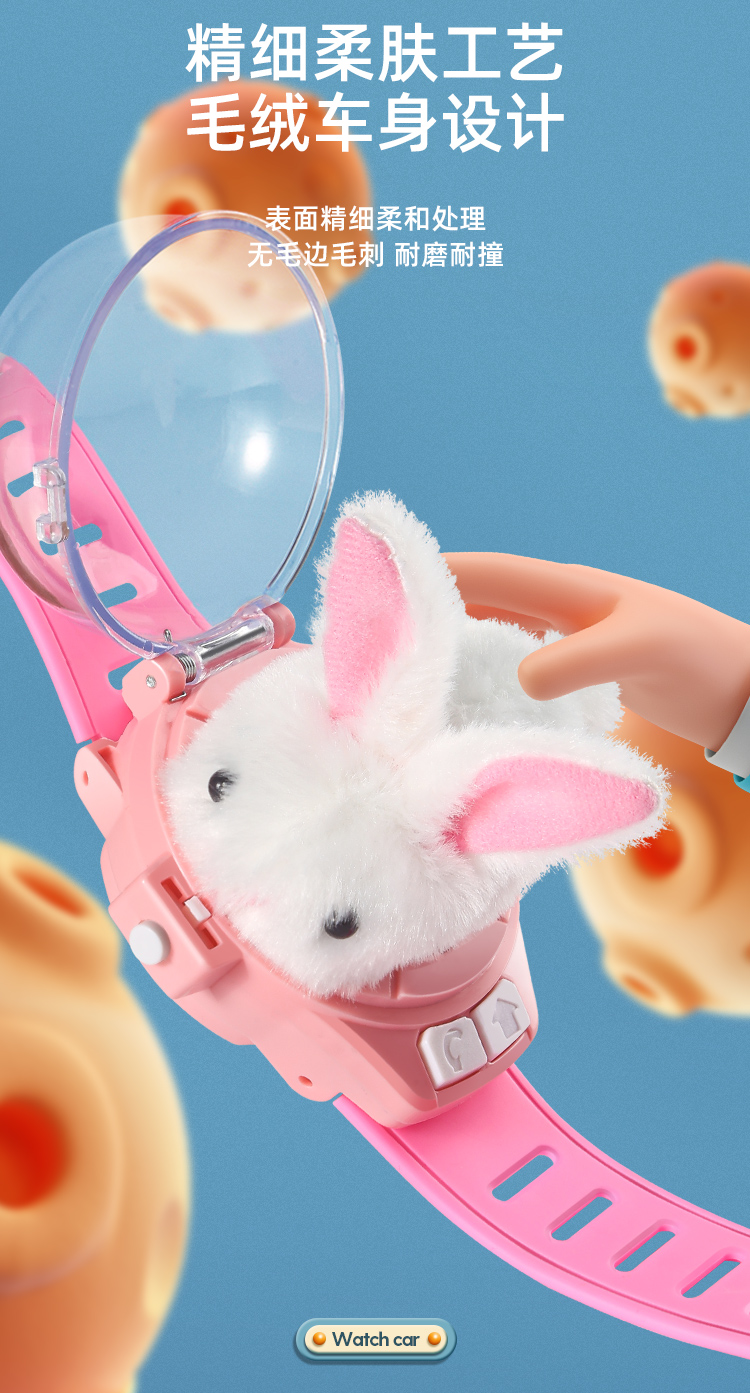 网红兔子手表遥控车电动迷你小汽车毛绒小白兔赛车儿童男女孩玩具
