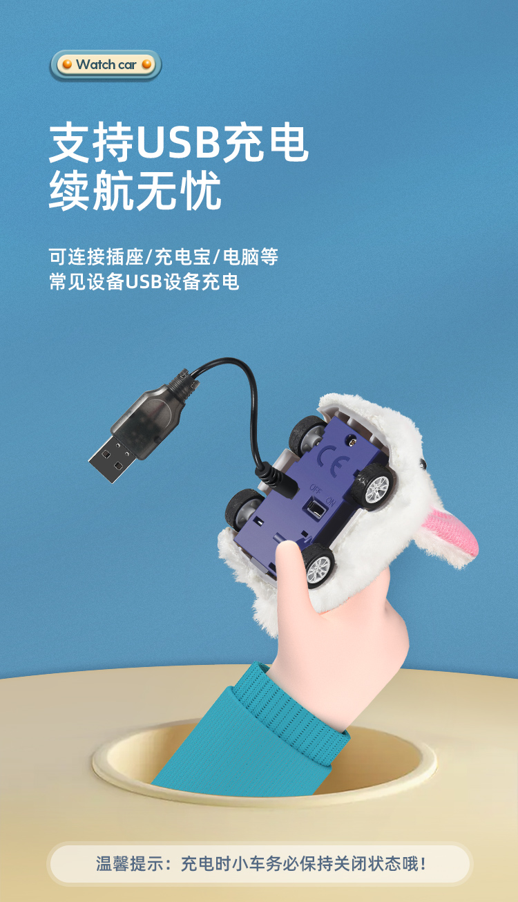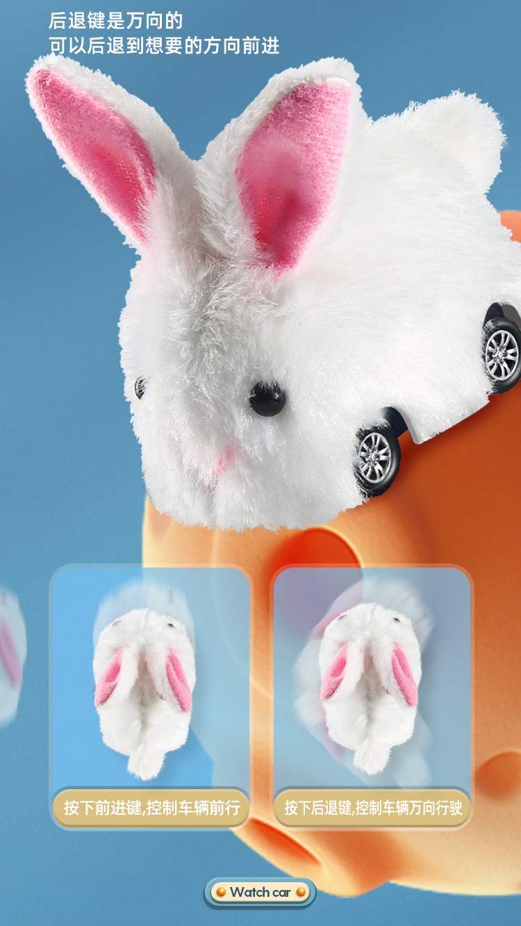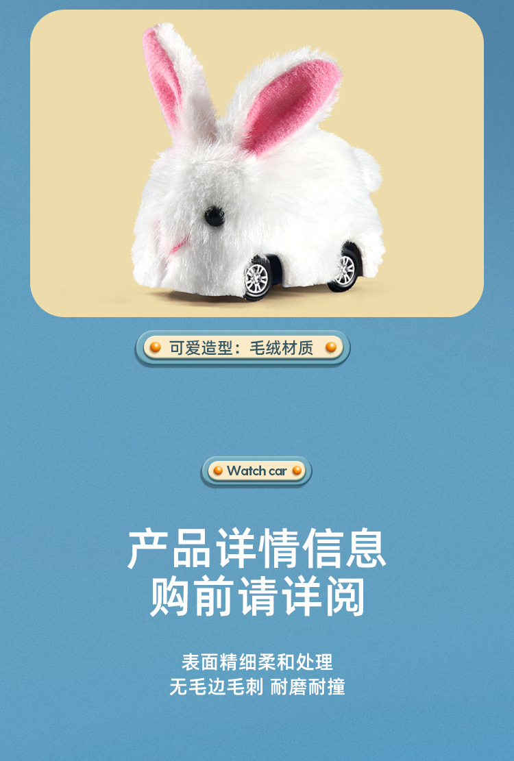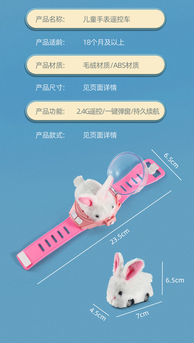 网红兔子手表遥控车电动迷你小汽车毛绒小白兔赛车儿童男女孩玩具