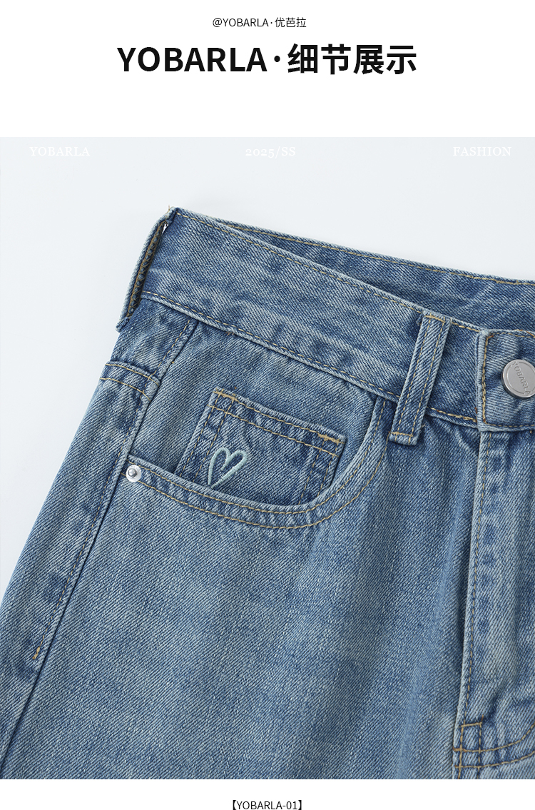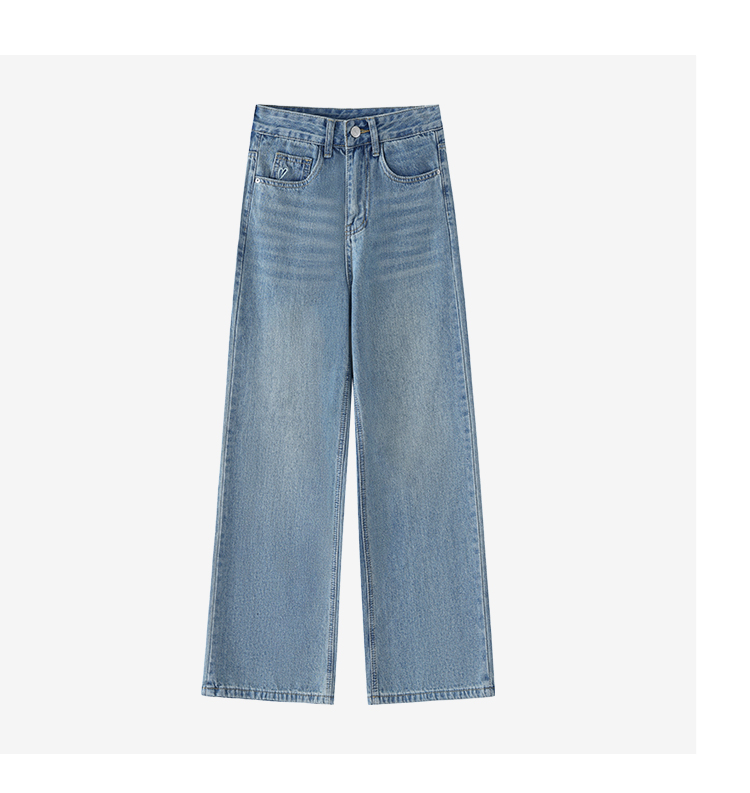 蓝色阔腿牛仔裤女夏季新款大码胖mm宽松显瘦梨形身材窄版直筒裤子