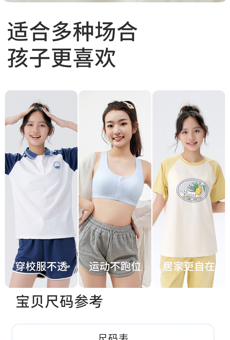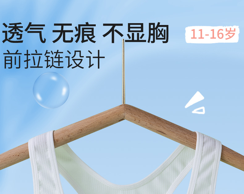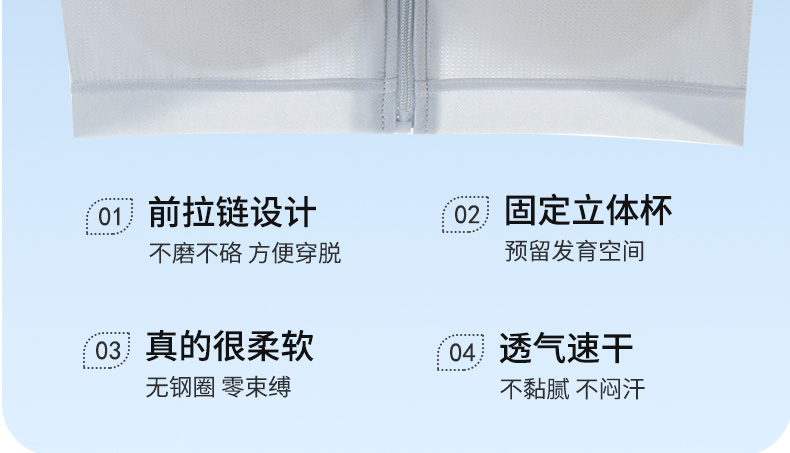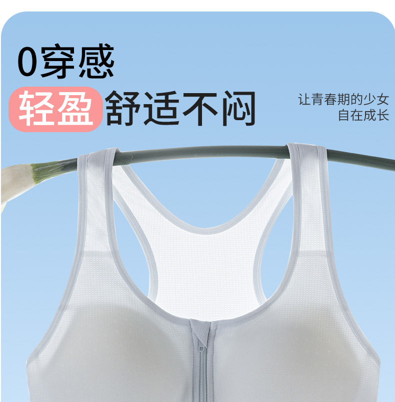 发育期少女内衣学生初中生高中运动防震背心前拉链纯棉女大童文胸