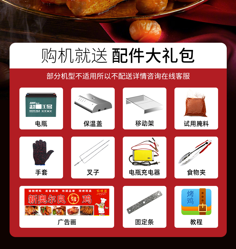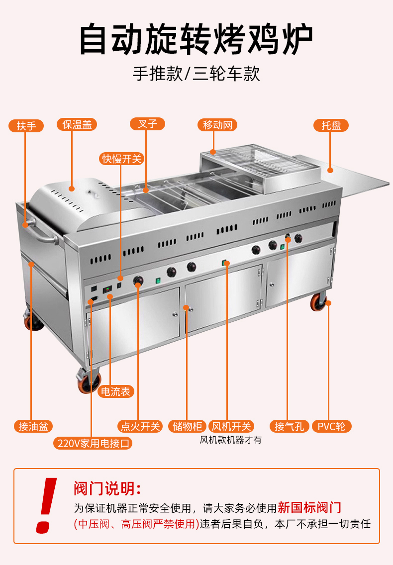 2025新款摇滚烤鸡炉旋转自动燃气电烤摆摊奥尔良烤鸡腿烧烤炉