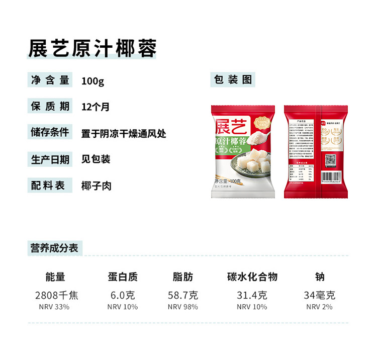 展艺椰蓉椰丝500g椰蓉粉面包糕点椰奶小方糯米糍大福烘焙装饰原料