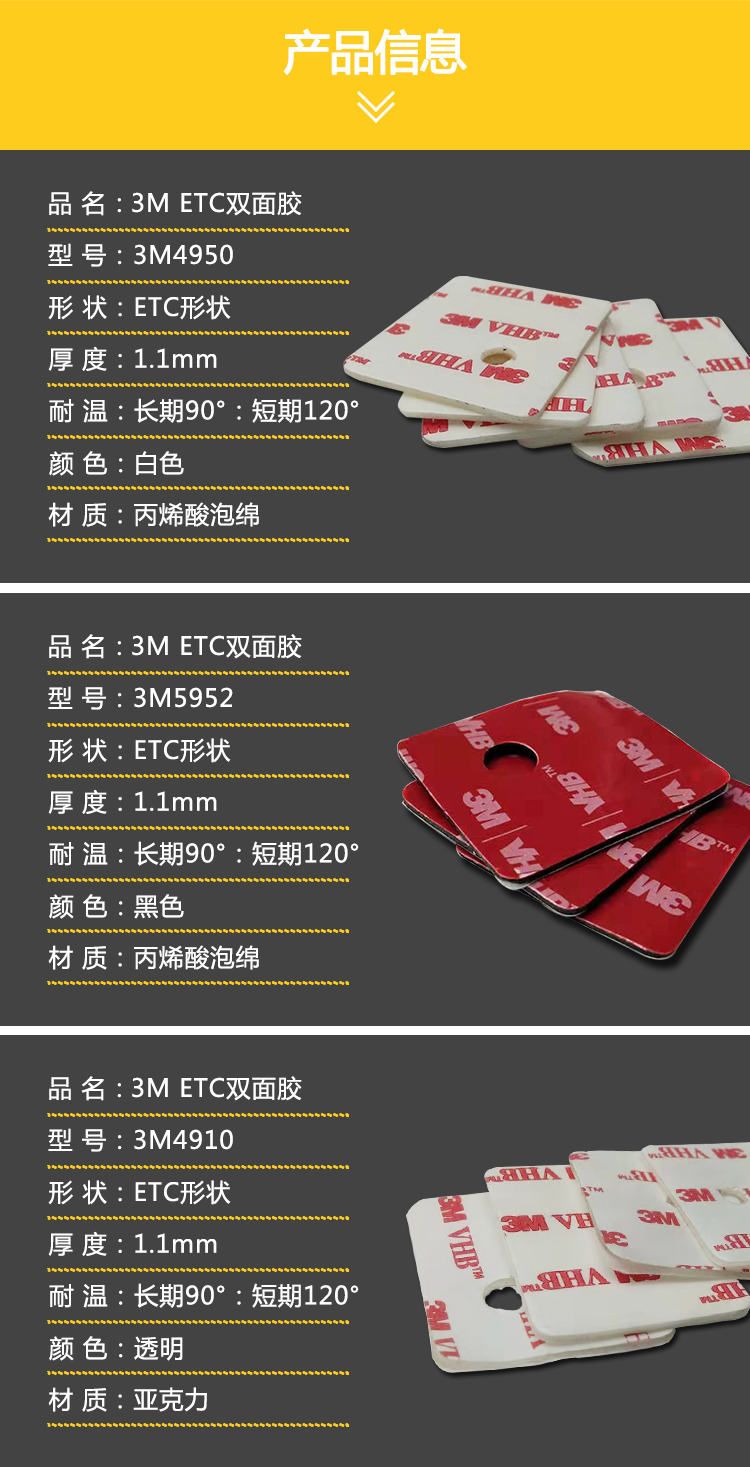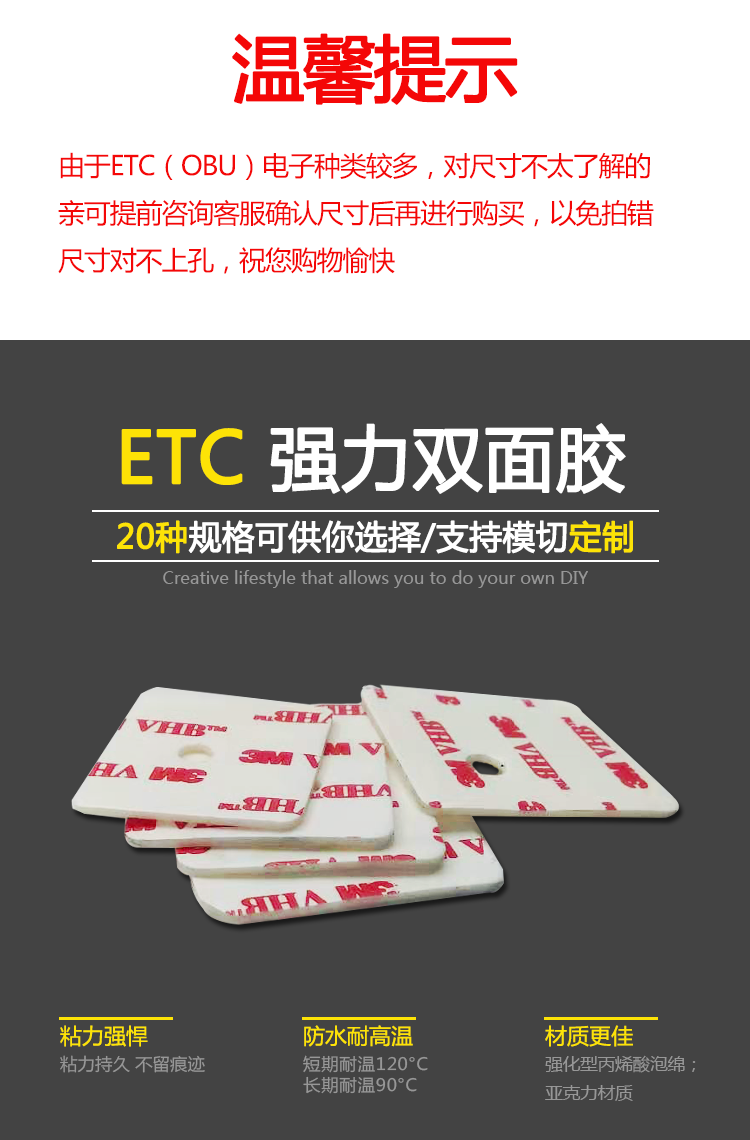 3m双面胶带ETC胶强力固定耐高温高粘度车用支架挂钩记录仪etc胶贴