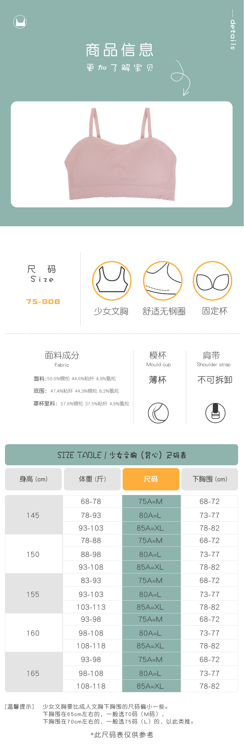 100%感觉百分百感觉舒适小清新无钢圈中薄款背心少女文胸42116