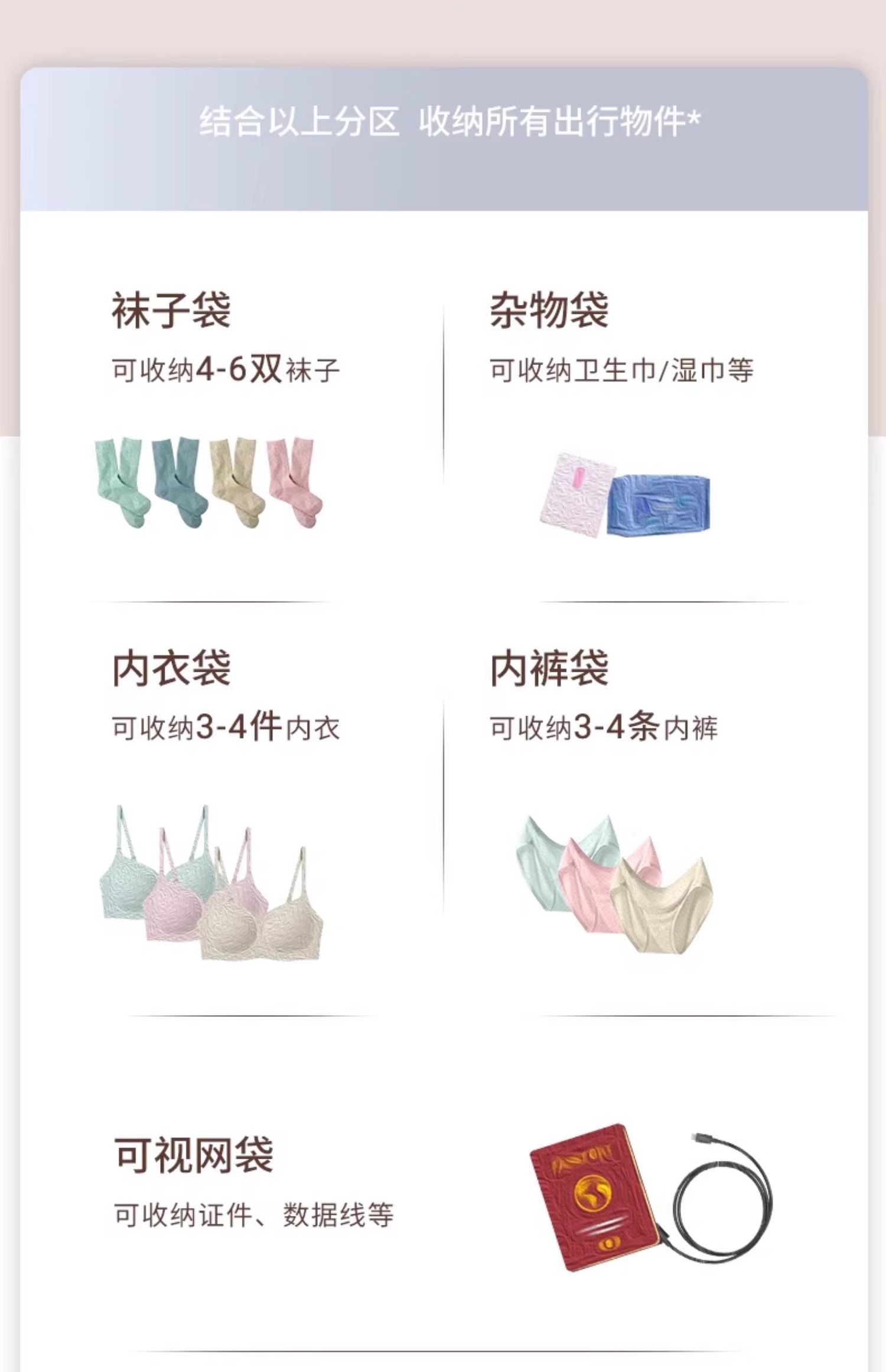 羽绒服旅行收纳袋出差便携式行李箱七合一内衣内裤贴身衣物整理包